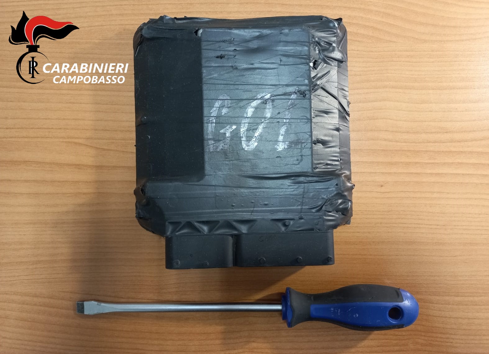 Nel corso dell’immediata perquisizione veicolare e personale d’iniziativa, venivano rinvenuti una centralina per autoveicoli modificata (utilizzata in sostituzione di quella originale del mezzo asportato) ed un cacciavite alterato (usato per forzare la portiera lato guida e successivamente avviare il veicolo), entrambi chiaramente utilizzati per il