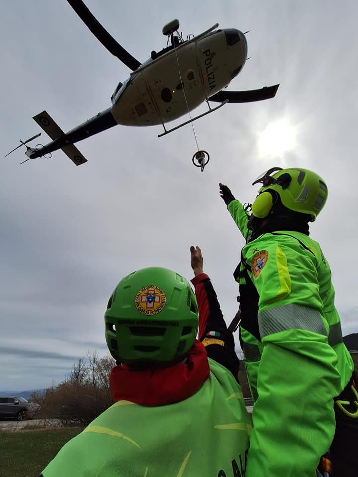 Durante l’esercitazione il personale tecnico del CNSAS, con l’ausilio dell’equipaggio di condotta, si è addestrato nella movimentazione, imbarco e sbarco in hovering (volo stazionario) e mediante verricello.