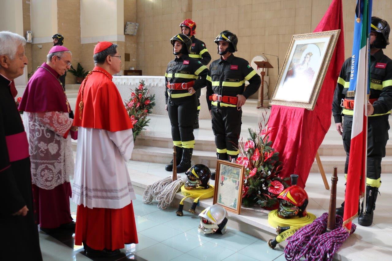 Come da tradizione si è svolta ieri la ricorrenza di Santa Barbara, patrona del Corpo nazionale dei Vigili del fuoco, svolta in concomitanza del 25° anniversario di consacrazione della Chiesa di San Giuseppe Lavoratore di San Lazzaro (ISERNIA), con una Solenne Celebrazione presieduta da Sua Eminenza Luis Antonio Gokim Cardinale Tagle, Prefetto del dicastero per l’Evangelizzazione dei popoli, con la partecipazione di numerose autorità ecclesiastiche tra cui il Vescovo della Diocesi di Isernia-Venafro monsignor Camillo Cibotti.