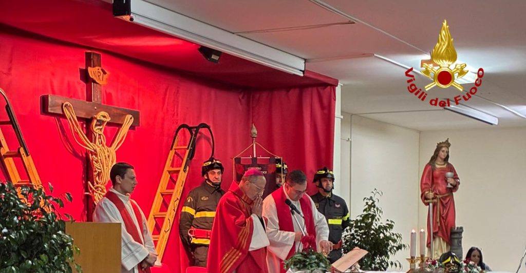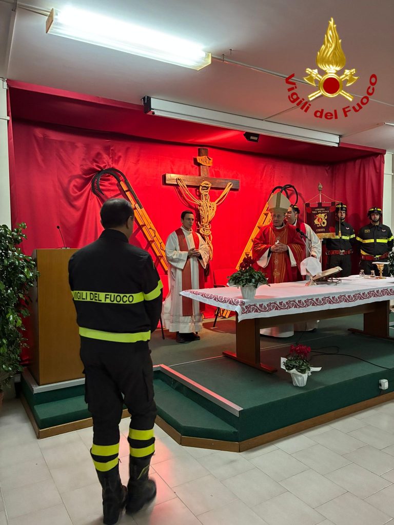La cerimonia ha avuto seguito nell’aula magna del Comando provinciale con la Santa Messa in onore di Santa Barbara, presieduta da S.E. l’Arcivescovo metropolita di Chieti-Vasto, Mons. Bruno Forte, al termine della quale, dopo l’emozionante lettura della preghiera del Vigile del fuoco e al termine del saluto del Comando ai convenuti, è stato consegnato a Mons. Forte un omaggio a nome di tutti i Vigili del fuoco della provincia di Chieti, con sensi di gratitudine per le preziose parole espresse, in oltre venti anni di funzioni religiose officiate in onore di Santa Barbara, sul senso umanitario della missione istituzionale affidata dei Vigili del fuoco, che sono state di grande aiuto per superare i momenti più difficili.
