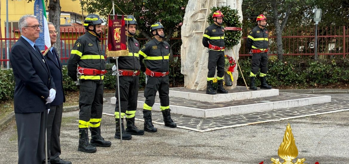 A seguire, sono stati tributati gli onori ai Vigili del fuoco caduti in servizio con la deposizione di una corona d’alloro da parte del Prefetto di Chieti sul monumento in pietra della Maiella raffigurante il martirio di Santa Barbara, contornato dal labaro del Comando dei Vigili del fuoco di Chieti e dalla bandiera dell’Associazione nazionale dei Vigili del fuoco – Sezione di Chieti.