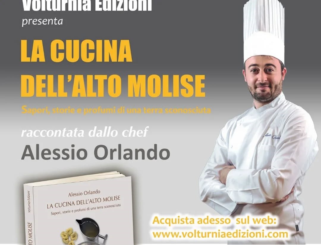 Alessio Orlando, giovane ma già brillante chef di Agnone, ha dato alle stampe “La cucina dell’Alto Molise”, un «dovizioso e minuzioso manuale», scrive la critica di settore, in cui l’autore manifesta «solide conoscenze culinarie e gastronomiche che gli provengono dalle cucine di casa, con mamma e nonna elette a “maestre” di gusto e pietanze, e da scuole e maestri di arte culinaria».