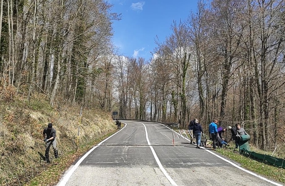 Il problema è, ovviamente, quello di fare in modo che gli animali utilizzino soltanto quei passaggi. Qui entrano in gioco i volontari che domenica hanno installato barriere mobili su entrambi i lati dalla provinciale sistemate in modo da convogliare gli anfibi e qualsiasi altro animaletto voglia attraversare, verso i sottopassi. È stato un impegno intenso, di gran lena, dalle 10 sino al primo pomeriggio, preceduto da una breve escursione nel bosco dove i volontari hanno incontrato numerose salamandre pezzate pronte alla migrazione e che saranno salvate dalle barriere.