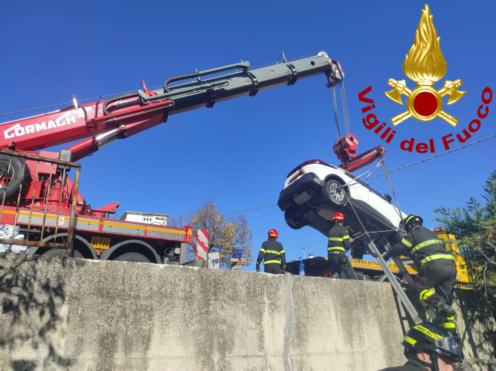 Questa mattina una squadra di Vigili del Fuoco del Comando di Campobasso con il supporto di un’autogrù del Comando di Isernia, si è recata a Trivento (CB) per il recupero di un’autovettura.