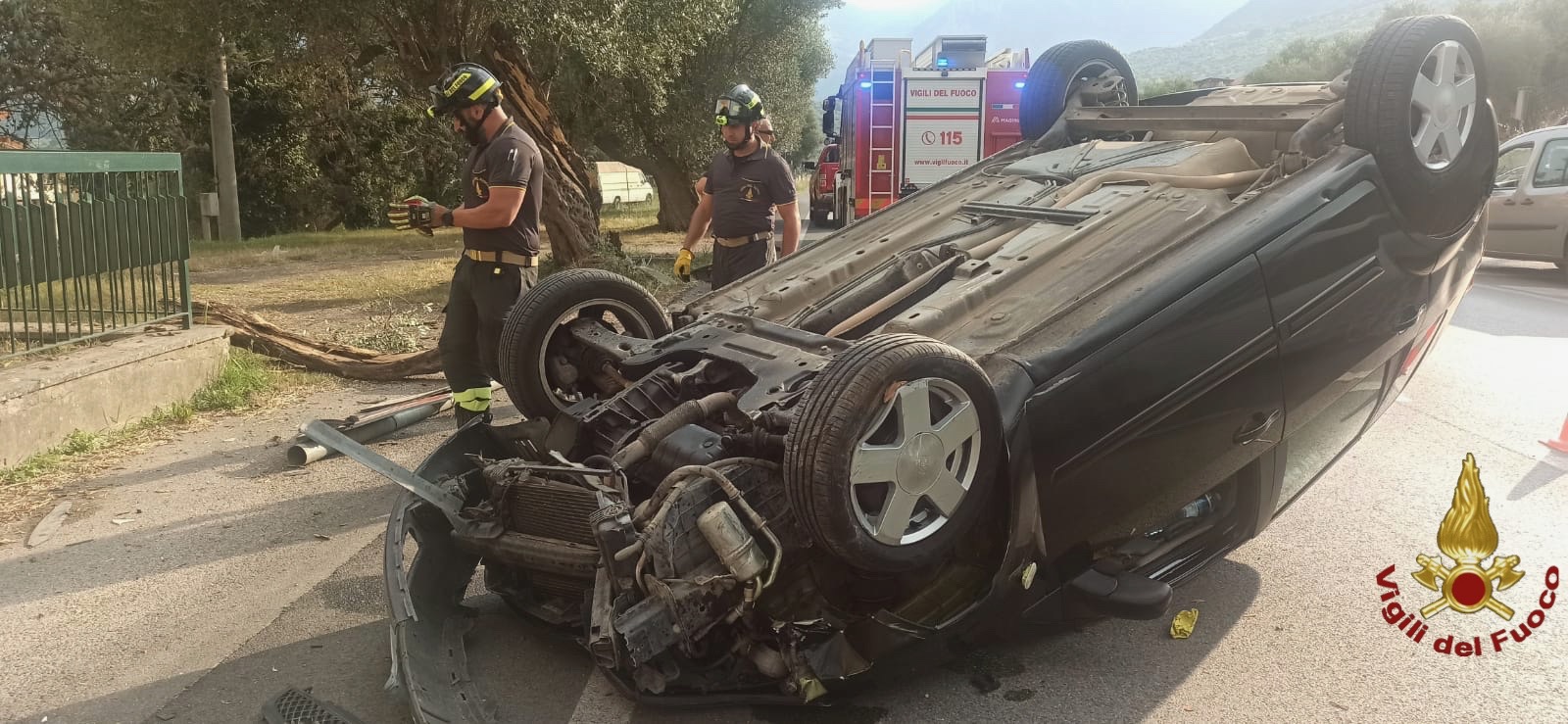 Sbanda e si ribalta sulla Casilina, ferito estratto dai Vigili del fuoco