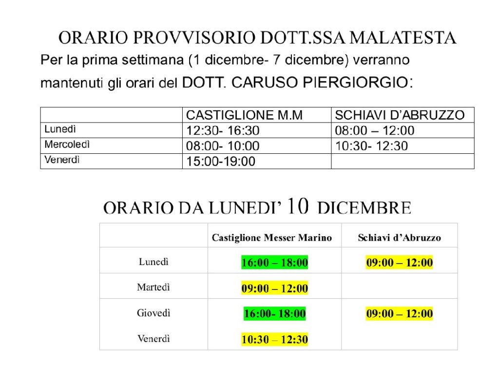 Dalla giornata di oggi è possibile effettuare la scelta del nuovo medico di base per i residenti nell’Alto Vastese precedentemente assistiti dal dottore Caruso.