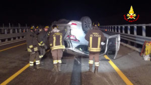 con un’intera famiglia padre madre ed una figlioletta di 9 mesi, ed una Alfa Romeo 147 con tre giovani a bordo, che, in seguito all’urto, si era ribaltata sul viadotto sovrastante la zona industriale di Termoli. Immediati i soccorsi per le persone coinvolte. L’intera famiglia veniva trasportata in ospedale, mentre i tre giovani, praticamente illesi, venivano medicati sul posto dal