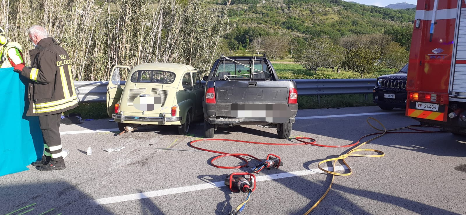Incidente stradale, nel pomeriggio di oggi, sulla fondovalle Sangro, sul territorio comunale di Archi, precisamente al km 62.300, direzione mare. Due i veicoli coinvolti, una vettura Fiat 600 d’epoca, condotta da un 85enne di Roccascalegna e una Fiat Strada condotta da una 60 enne di Montelapiano. Dalle prime ricostruzioni sembra che la conducente della Fiat Strada, in sosta in una piazzola, sia ripartita e nell’immettersi sulla fondovalle Sangro non si sia accorta dell’arrivo della 600. Inevitabile l’impatto che ha coinvolto le autovetture lateralmente. Sul posto sono intervenuti i Vigili del fuoco di Lanciano, il 118 di Casoli, una pattuglia dei Carabinieri del Radiomobile di Atessa per i rilievi. L’ anziano è stato trasportato in elisoccorso e ricoverato a Pescara, prognosi non conosciuta. La donna è rimasta illesa, sia pure sotto shock per l’incidente. Il traffico veicolare è stato deviato sulla viabilità minore per dare modo al personale operante di sgomberare la carreggiata e ripristinare lo stato dei luoghi.