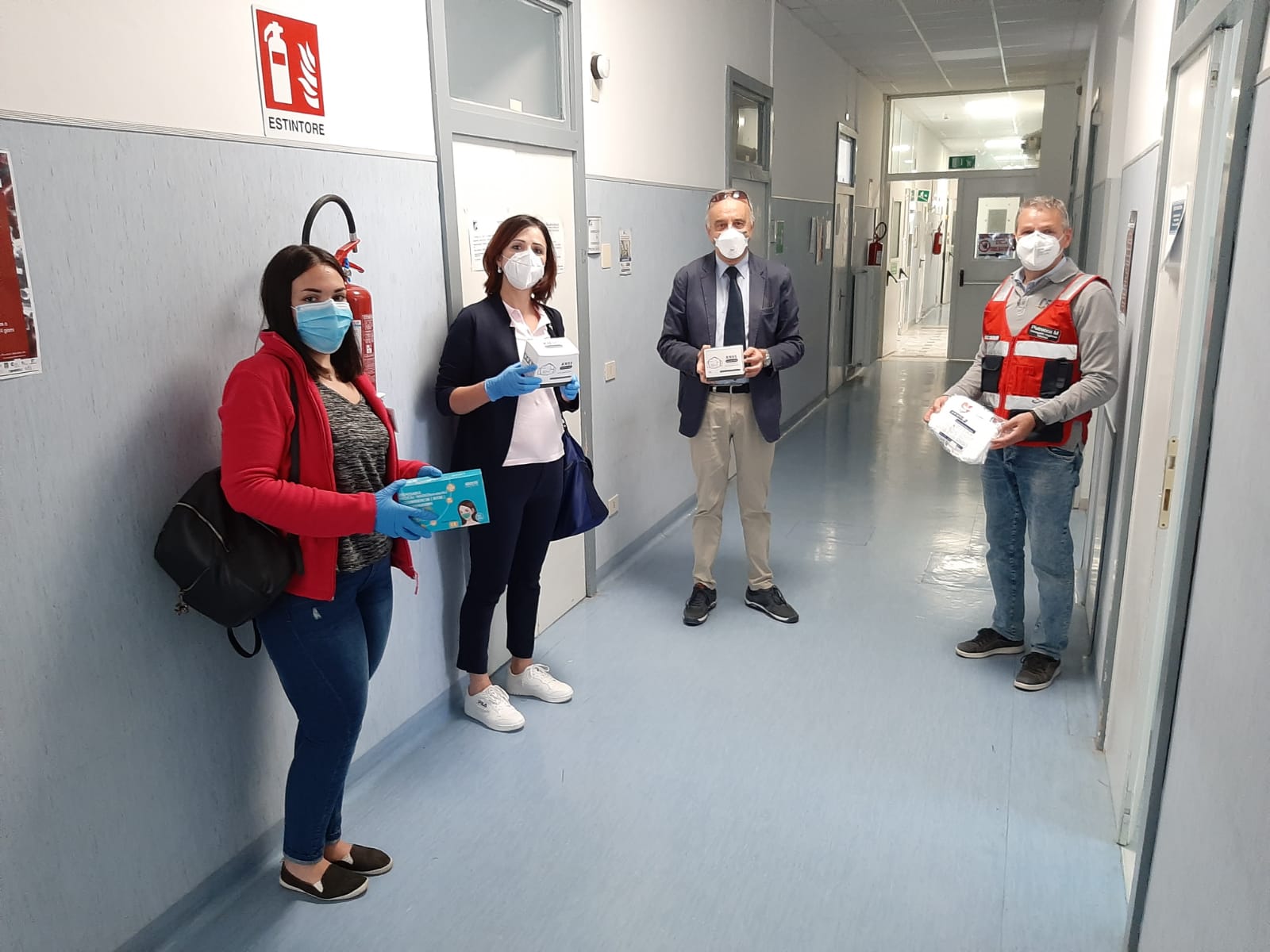 AGNONE. Duecento mascherine filtra batteri, 150 mascherine chirurgiche, 120 Ffp2, 90 mascherine chirurgiche tre strati. E’ la donazione che la casa di riposo San Bernardino e il Nucleo di Protezione civile di Agnone hanno fatto ieri mattina al distretto sanitario dell’ospedale ‘San Francesco Caracciolo’. Magda Asmarandei, coordinatrice della storica casa di riposo e Mario Petrecca, responsabile dell’Anc – Protezione civile, ieri mattina si sono recati nella struttura sanitaria e hanno consegnato a Luigi Cammarota, direttore del distretto sanitario di Isernia-Agnone e Venafro, il materiale che servirà al personale infermieristico e all’utenza in entrata al Caracciolo sprovvista di Dpi. La donazione fa seguito a quanto già fatto circa un mese fa, quando all’ospedale furono donate una ventina di tute protettive.