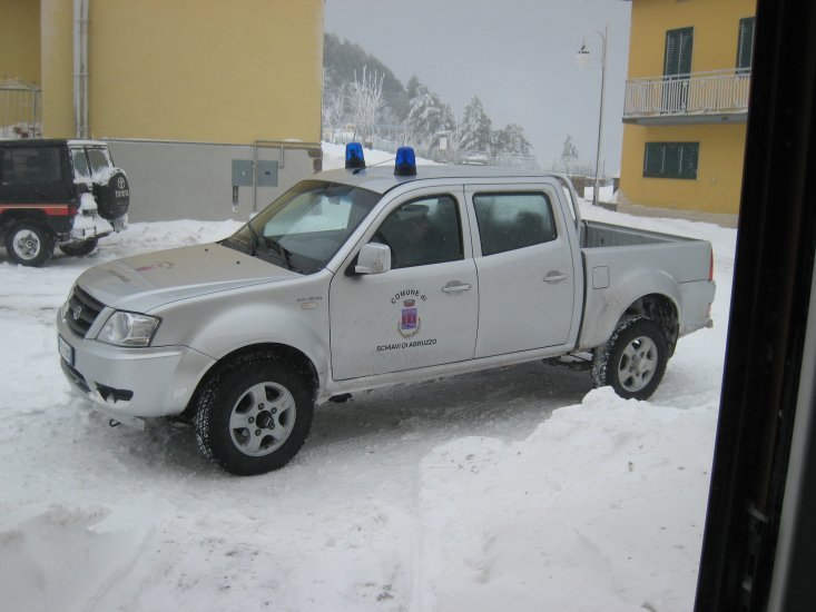 SCHIAVI DI ABRUZZO – Senza catene e senza pneumatici da neve, l’utile Pick-up del Comune di Schiavi resta in letargo.