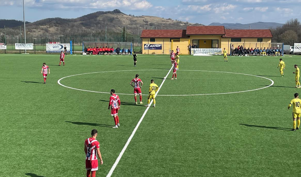 Una vittoria e un pareggio, è il bilancio delle due molisane impegnate nel campionato di serie D, girone F. La 26^ giornata sancisce il successo, importantissimo, del Vastogirardi che al Di Tella ha la meglio sulla Vastese grazie ai gol di Pierfederici (52’) e Fiori (70’) con quest’ultimo che annulla la rete del momentaneo pareggio messa a segno da Bracaglia (53’). I tre punti allontano ulteriormente gli altomolisani dalla parte bassa della classifica che si portano a +5 dalla zona play-out. E la vittoria sugli uomini di Cornacchini, consente al Termoli l’aggancio al terz’ultimo posto complice l’ottimo pari conquistato a Piedimonte Matese contro i padroni di casa passati in vantaggio con il solito Vittorio Esposito. A pareggiare i conti il marocchino El Oaunzi. Ora, a otto giornate dalla conclusione della stagione, i giallorossi credono nella salvezza diretta distante quattro lunghezze. Fondamentale il prossimo turno che al ‘Cannarsa’ prevede il derby tutto molisano con la formazione di Coletti.