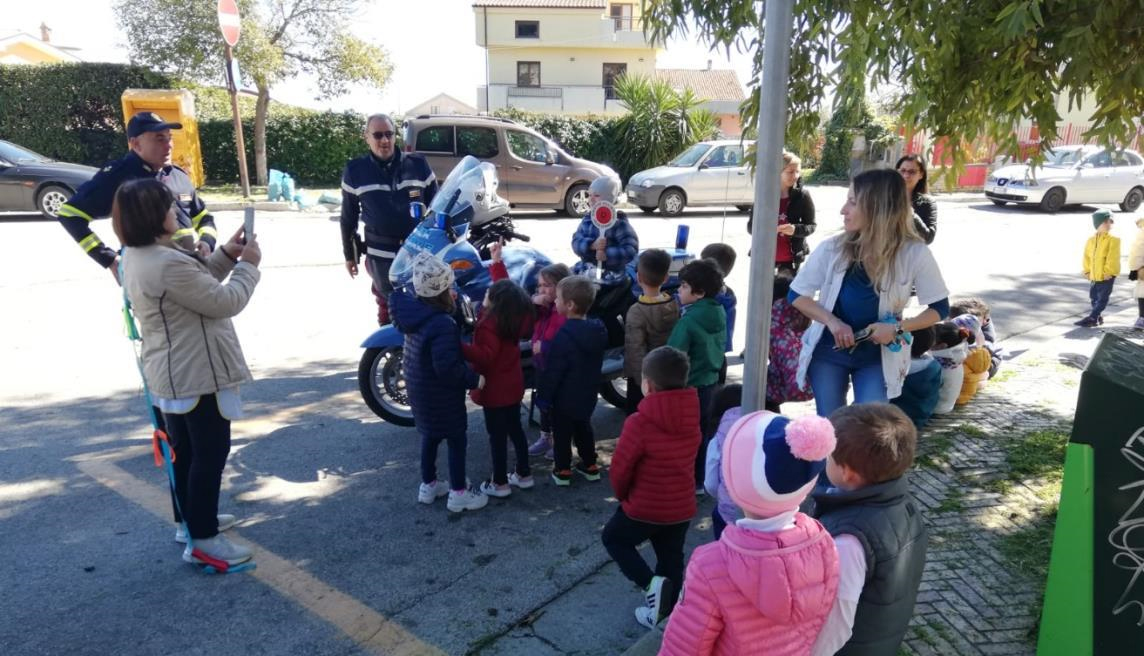 Trentacinque bambini della scuola dell’infanzia di Sant’Antonio Abate di Vasto (CH) hanno incontrato operatori della Sezione Polizia Stradale di Chieti, che hanno loro illustrato nozioni primarie di sicurezza stradale. Successivamente i piccoli hanno effettuato una breve passeggiata tenendo per mano i poliziotti, al fine di responsabilizzarsi e focalizzare la loro attenzione sull’importanza concetti appena appresi. Al termine i bambini hanno preso posto con entusiasmo sulle tre moto della Polizia Stradale per le foto di rito