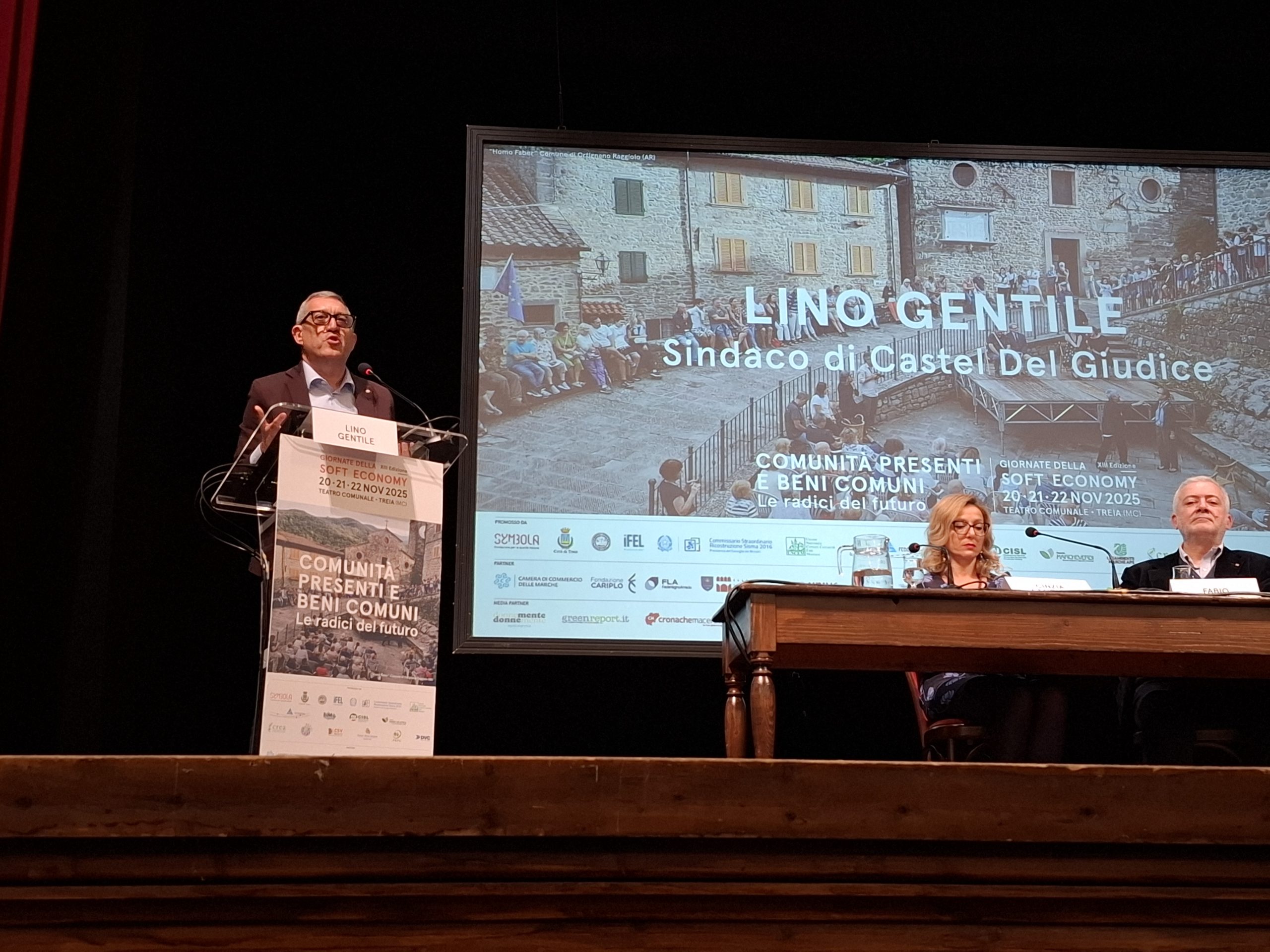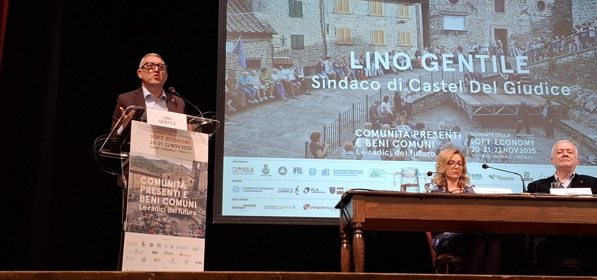 «Uscire dalla dimensione difensiva e superare la forma di attendismo dei territori delle aree interne per sperimentare nuove frontiere di innovazione a vantaggio del Paese grazie anche al ruolo attivo del patrimonio comunale per nuovi progetti di sviluppo». Non è una semplice dichiarazione, ma un vero e proprio manifesto politico e amministrativo. Con queste parole il sindaco di Castel del Giudice, Lino Gentile, è intervenuto nei giorni scorsi a Treia, in occasione delle giornate della Soft Economy promosse dalla Fondazione Symbola, nel corso della quarta sessione dal tema “La Ricchezza del bosco: bilanci pubblici, patrimoni privati e beni comuni”.