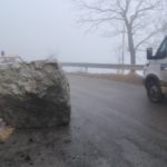 Sul posto il personale della Provincia che sta posizionando la segnaletica in attesa del mezzo meccanico che dovrà rimuovere il macigno.
