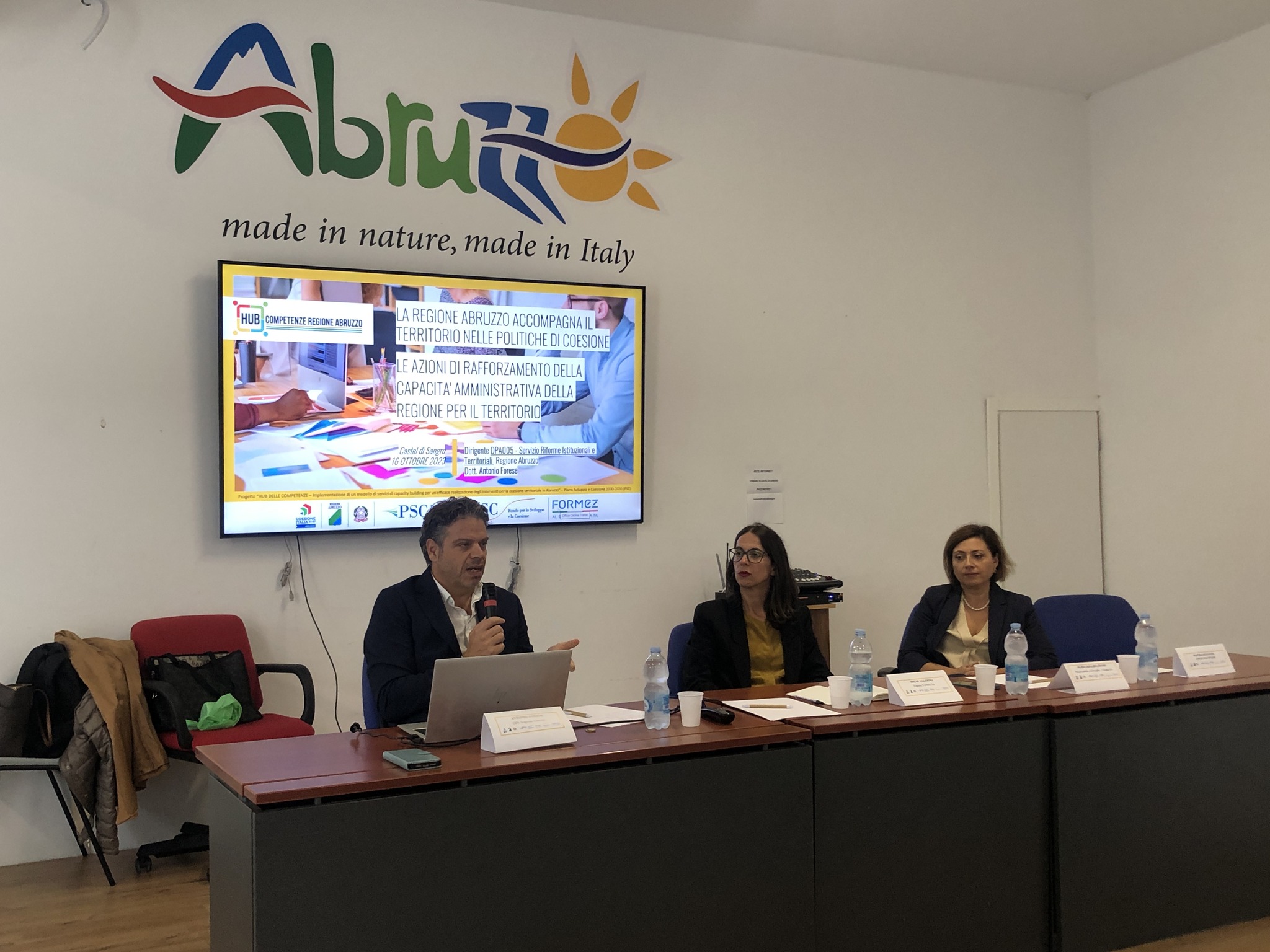 Presenti all’incontro Antonio Forese, dirigente del Servizio Riforme Istituzionali e Territoriali della Regione Abruzzo, Mariarosaria Russo, responsabile Formez PA del progetto “Hub delle Competenze” e l’esperta Formez Irene Salerno.