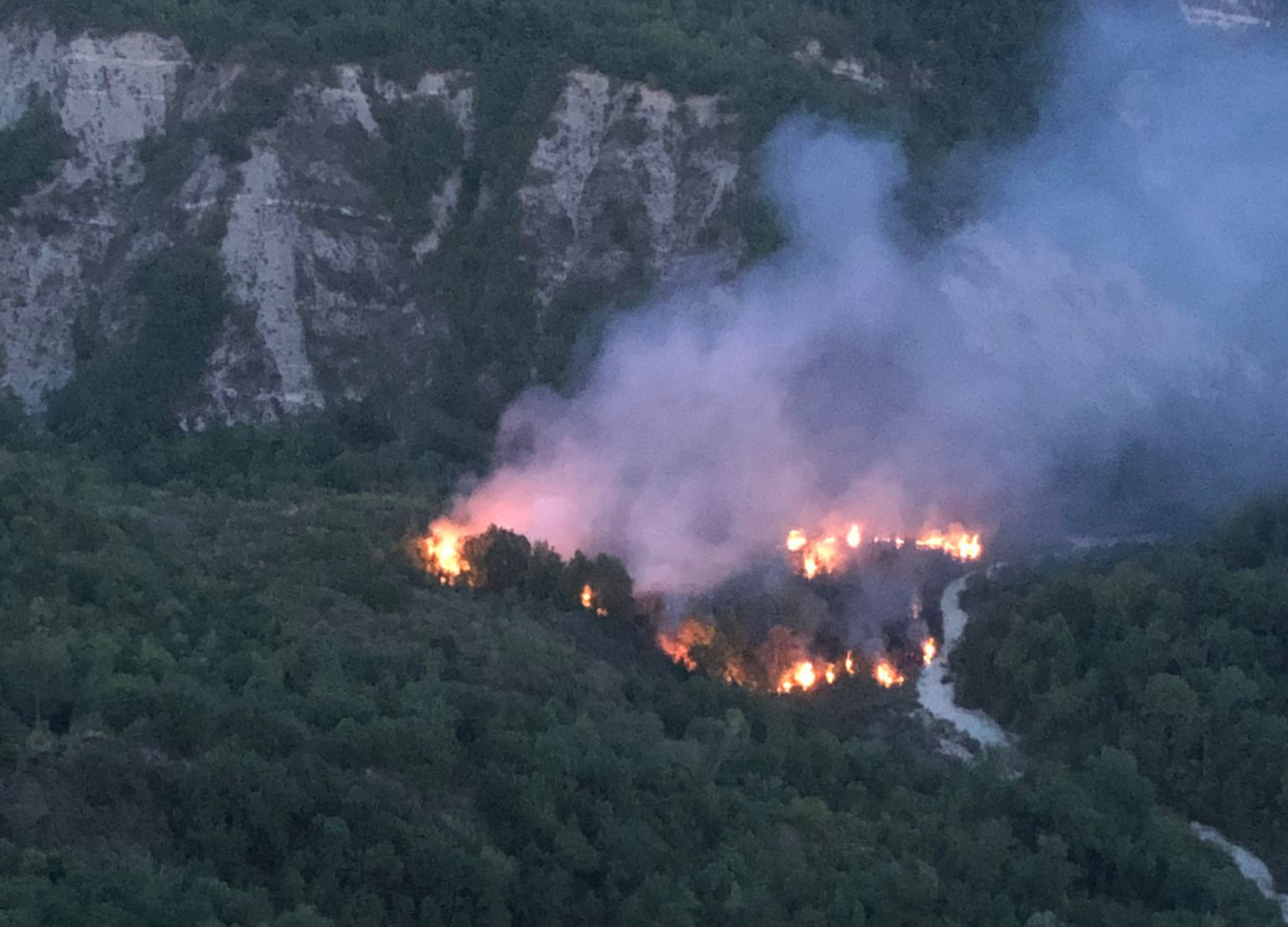Le fiamme si sono originate, o meglio sono state appiccate, perché è chiara la matrice dolosa del rogo, in una zona impervia, accessibile solo attraverso una mulattiera carrabile percorsa da tartufai, cacciatori e mezzi agricoli. Il fronte del fuoco, spinto da vento, per fortuna ha preso la direzione del greto del fiume Sente, condizione che ha aiutato le operazioni di spegnimento e ha limitato la propagazione delle fiamme. I danni ambientali e l’area percorsa dal fuoco non sono stati ancora completamente quantificati, tuttavia le prime stime parlando di almeno nove ettari di vegetazione distrutta e risulta coinvolto anche qualche uliveto.