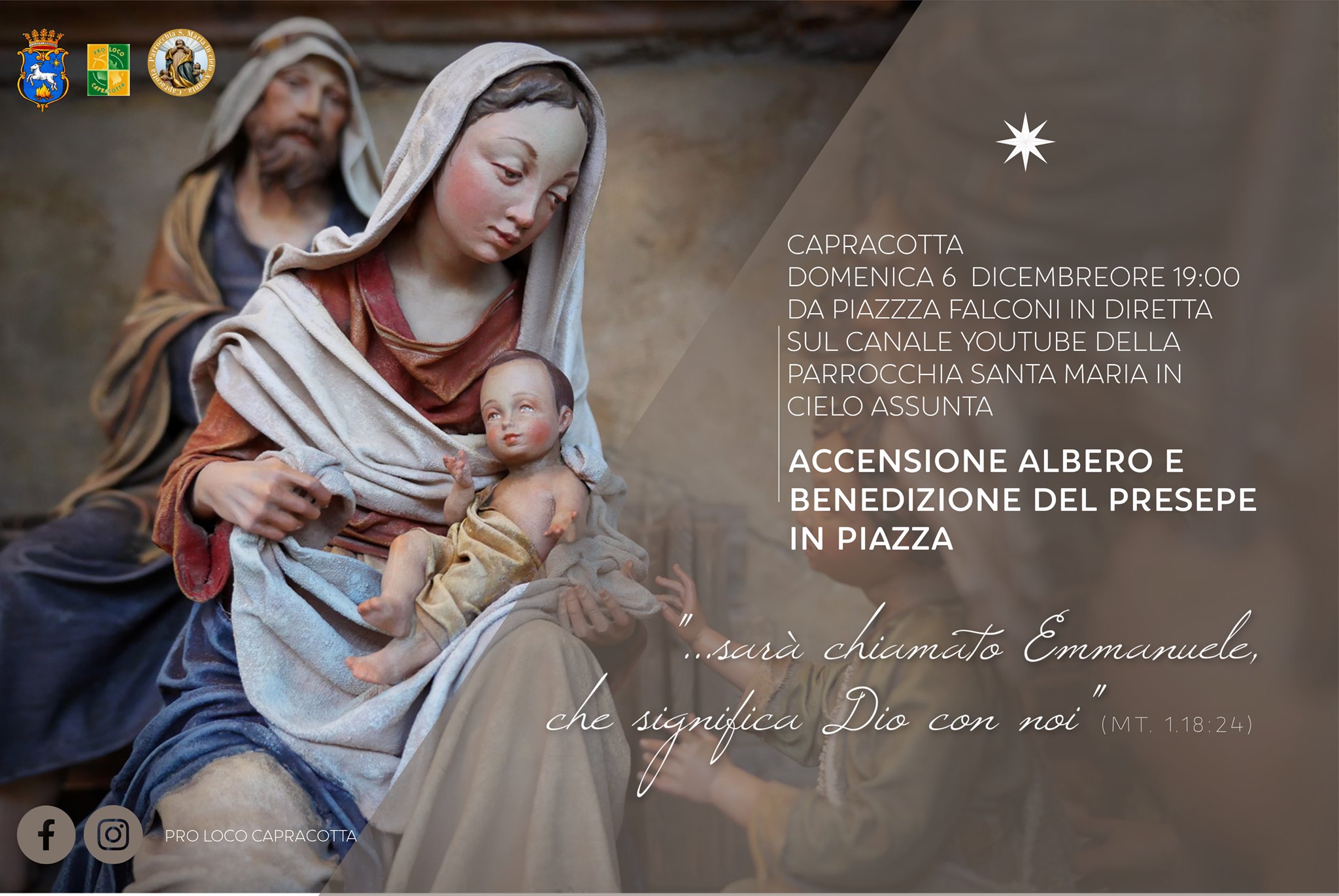 Si accenderanno in diretta, domenica 6 dicembre alle ore 19, da Piazza Falconi le luci dell’albero di Natale e del nuovo presepe allestito per il settimo anno consecutivo nella piazza più alta degli appennini a Capracotta. Un appuntamento che ormai è entrato a far parte delle tradizioni natalizie capracottesi e che anche quest’anno, seppur in modo diverso non mancherà.