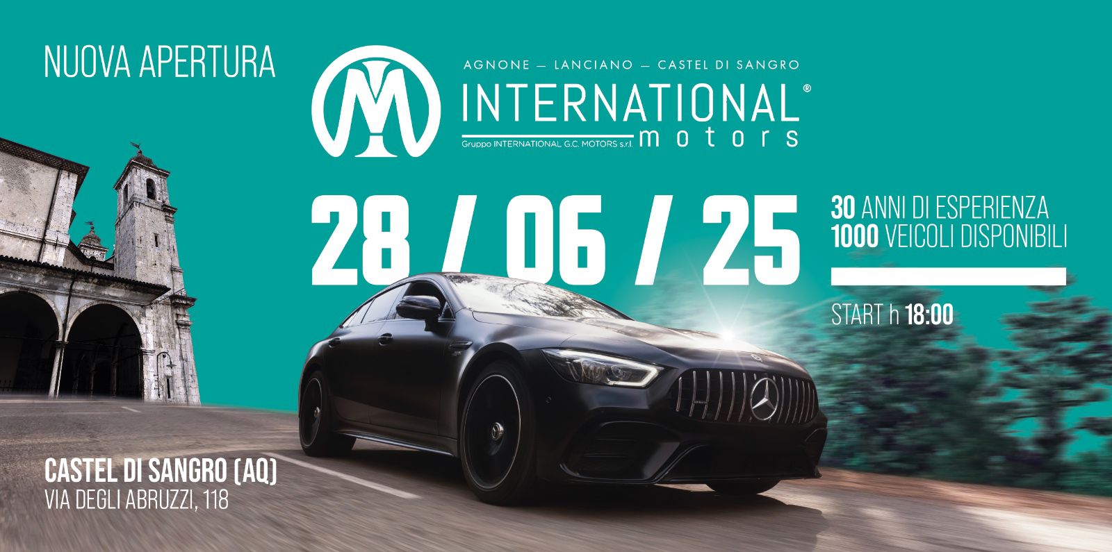 Sabato 28 giugno (ore 18) sarà una data storica per il gruppo International GC Motors Srl: il taglio del nastro del terzo salone automobilistico della concessionaria segnerà un nuovo capitolo di crescita per l’azienda fondata trent’anni fa dai fratelli Marco e Giampiero Colaizzo. Dopo i successi di Agnone e Lanciano (Ch), l’espansione arriva ora nell’aquilano, confermando la strategia di investimento nelle aree interne del Paese.