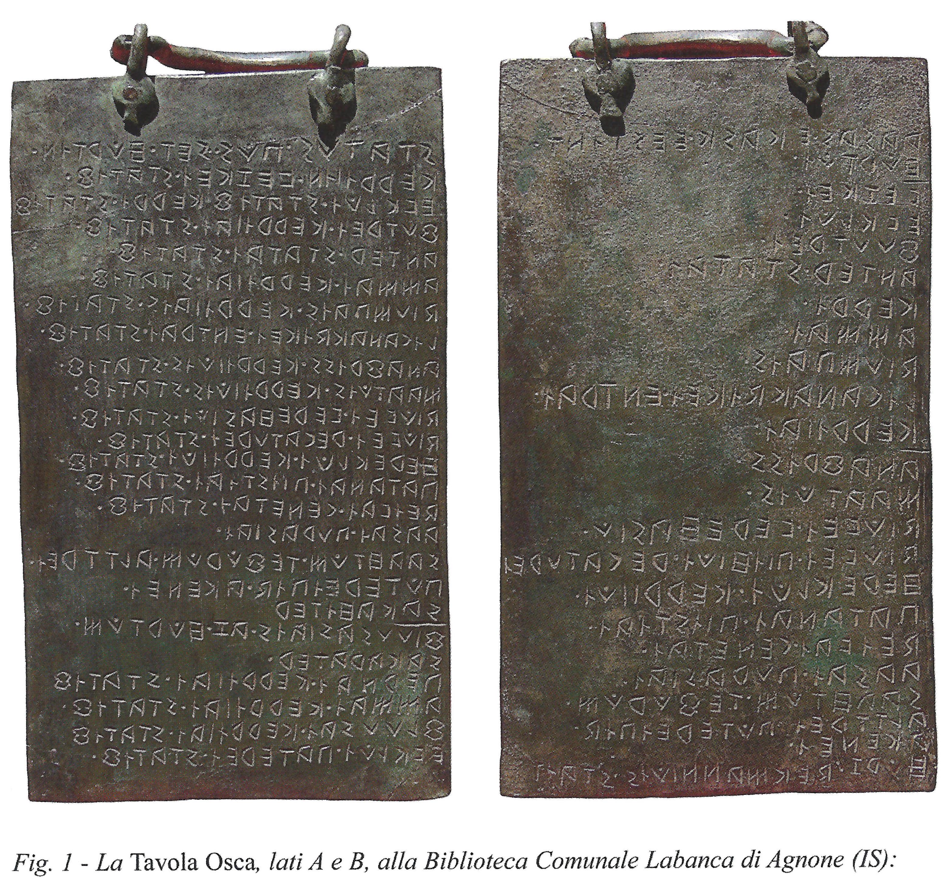 Prendendo spunto da questi elementi, due attenti studiosi della storia molisana, principalmente di quella sannitica, hanno voluto approfondire le conoscenze su quella che da sempre viene chiamata la “Tavola di Agnone” ed hanno raccolto tanti elementi da pubblicare in un libro che hanno intitolato: “Gli enigma – La tavola osca e Pietrabbondante”; gli autori sono Paolo Nuvoli e Bruno Paglione. Nuvoli, laureato in giurisprudenza e docente di materie giuridiche ed economiche, ha scritto vari libri sulla storia sannitica, oltre ad aver fatto una brillante carriera politica; Paglione, profondo conoscitore del territorio molisano, ha collaborato con le università del Molise, di Roma e di Ferrara ed è stato negli anni scorsi Ispettore Onorario per i beni archeologici della Provincia di Isernia.