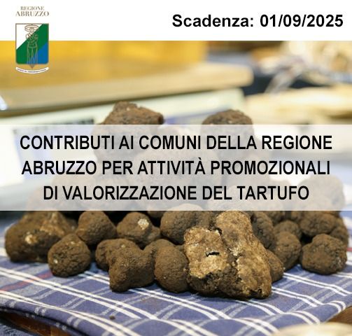 Avviso pubblico per erogare contributi finanziari ai Comuni della regione Abruzzo per la realizzazione di attività promozionali legate alla valorizzazione del tartufo attraverso manifestazione fieristiche e l’attivazione di percorsi gastronomici.