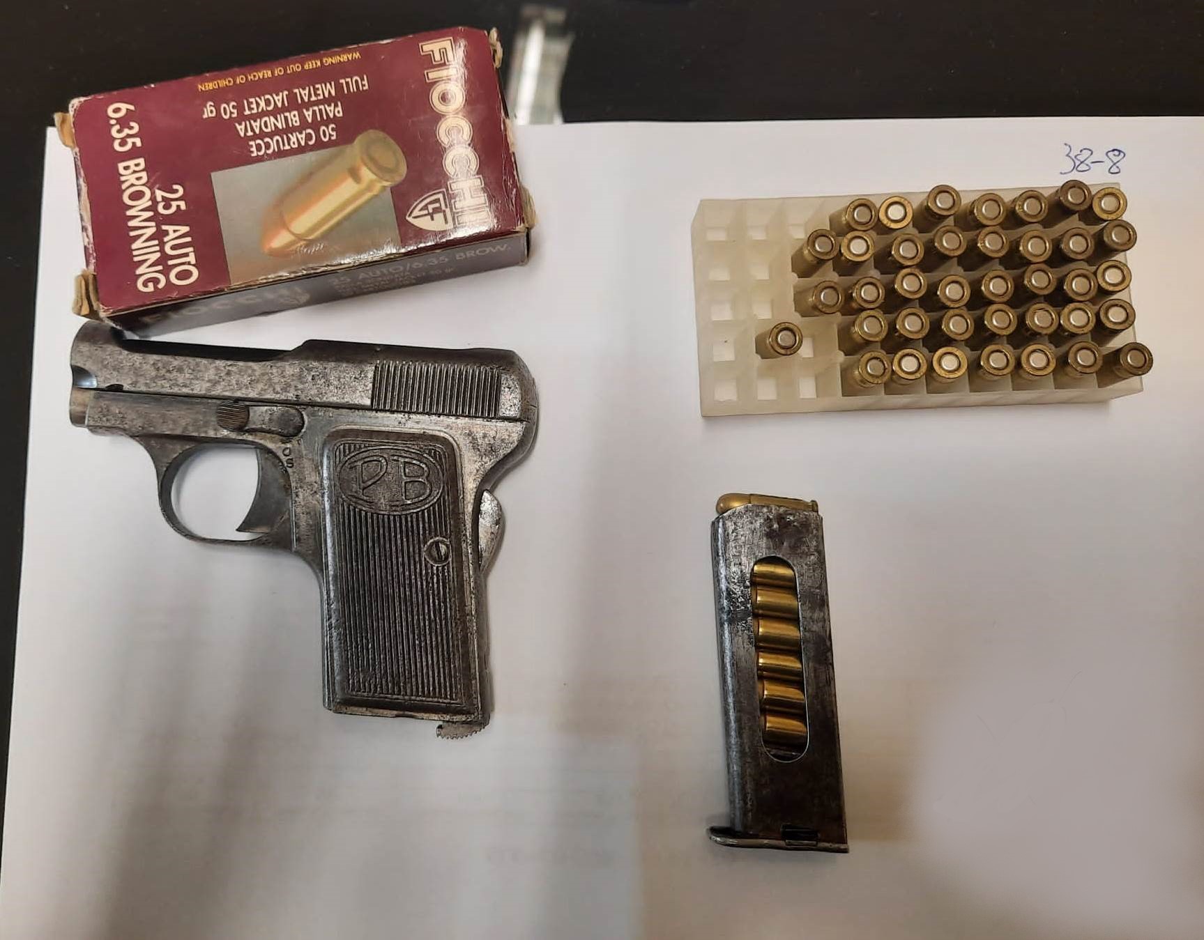 La perquisizione locale consentiva di rinvenire una pistola Beretta cal. 6.35 con 8 cartucce all’interno ed altre 38 cartucce dello stesso calibro illecitamente detenute e sottoposte a sequestro con conseguente deferimento per detenzione illegale di arma da fuoco e munizionamento.