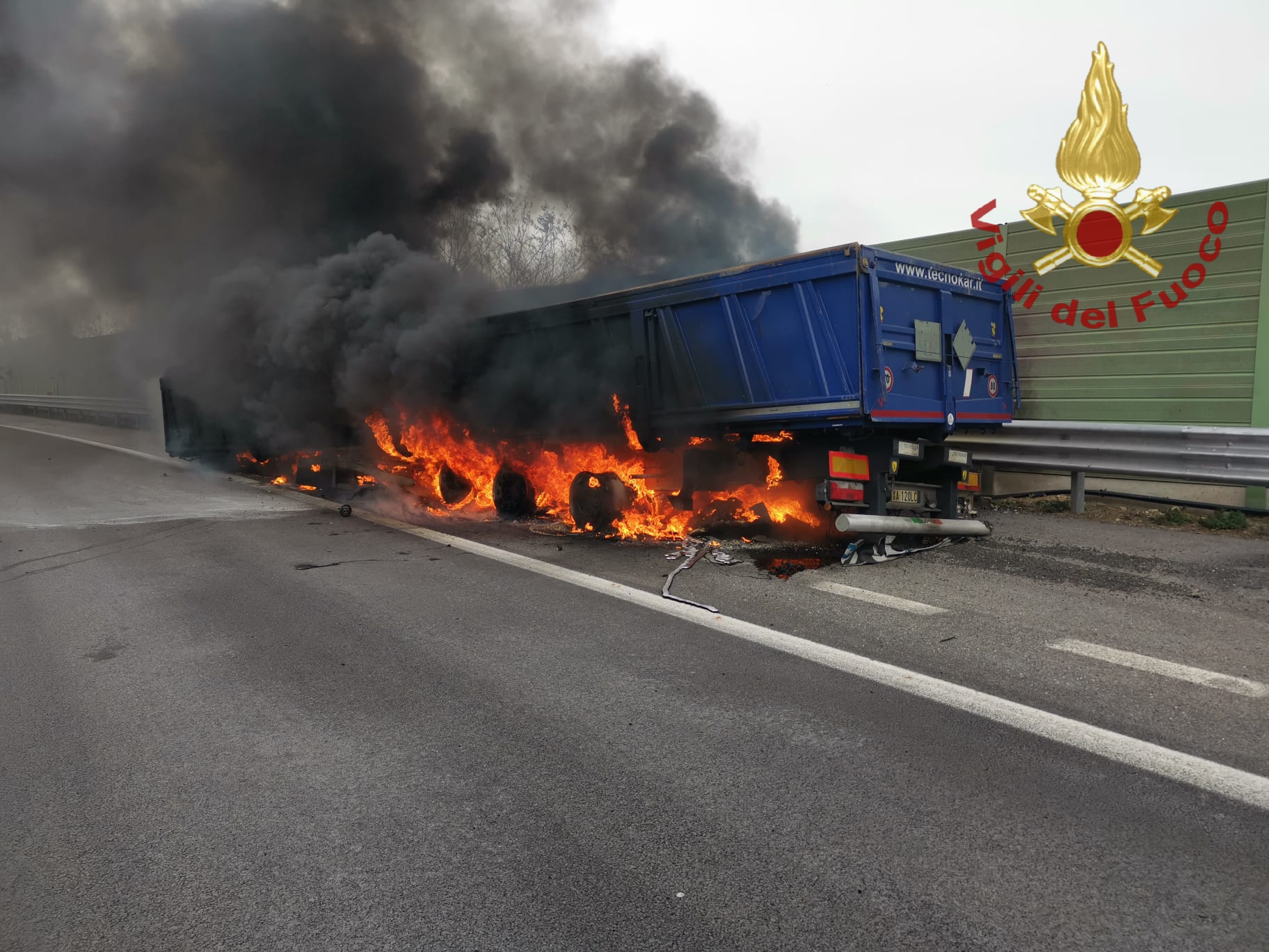 Vista l’impossibilità di operare del distaccamento di Vasto, impegnato in altre emergenze, sul posto si è recata un’autopompa e un autobotte del distaccamento di Termoli. Per fortuna l’autista, accortosi del principio di incendio, è riuscito a staccare la motrice dal rimorchio che trasportava materiale ferroso, e i danni si sono limitati a questo.