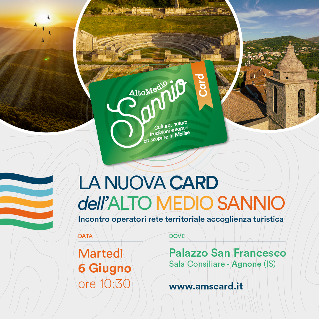 Un incontro con i protagonisti della rete di turismo integrato, i quali, grazie allo strumento della carta turistica, allegata ad una guida in doppia lingua (italiano e inglese) per visitare il territorio, lavorano in sinergia per favorire i movimenti dei visitatori sull’area interna molisana, tra siti culturali, musei, riserve naturali, attività esperienziali, ristoranti, prodotti tipici e di artigianato, con il vantaggio di offrire sconti e agevolazioni per trascorrere più piacevolmente le vacanze. Il sindaco di Agnone Daniele Saia e i referenti del progetto daranno informazioni utili sulla web app di Alto Medio Sannio Card, la novità del 2023, uno strumento digitale, che facilita i visitatori nell’accedere direttamente dallo smartphone a tutti i contenuti (informazioni sui luoghi, siti turistici, ristorazione, prodotti tipici, esperienze) e agli sconti della guida turistica e della card, ma che è stato pensato anche per gli stessi operatori, i quali con pochi clic potranno registrare le card a cui sono stati concessi sconti, e dunque raccogliere dati utili sui flussi turistici sul territorio. L’appuntamento del 6 giugno sarà importante anche per ritirare le nuove guide con le carte turistiche di Alto Medio Sannio e il materiale promozionale gratuito che gli operatori potranno distribuire come omaggio agli ospiti delle strutture ricettive, ai clienti di ristoranti e delle altre attività.