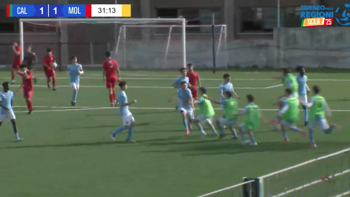 Il Molise ha sbloccato il risultato già al 1′ minuto con Merolla, attaccante dell’Alto Casertano. La Calabria ha trovato il pareggio al 5’ grazie alla rete di Samuele, ma alla mezz’ora è arrivata la risposta decisiva: calcio di rigore trasformato da Colato che ha riportato avanti i molisani.
