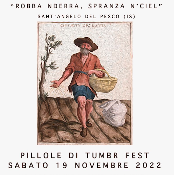 Una serata all’insegna della tradizione del ‘Tumbr fest’, serie di inizative che prendono il nome dall’antica unità di misura utilizzata durante il regno delle due Sicilie e messa fuori corso nel 1861, a seguito dell’unità d’Italia. Il tomolo, a cui tutti gli anziani si riferiscono quando si parla della terra, è quello da cui, per un’intera civiltà, tutto discende. Il Festival nasce con l’intento di preservare la memoria di antiche usanze altrimenti destinate all’oblio. Il tema di questa giornata è la semina del grano e il pane, da cui deriva. Nella civiltà contadina il pane è il simbolo per eccellenza dei cicli stagionali e si inserisce in tutta una serie di riti che servono a riscattare quel senso di insicurezza e precarietà su cui si basava il vivere quotidiano.
