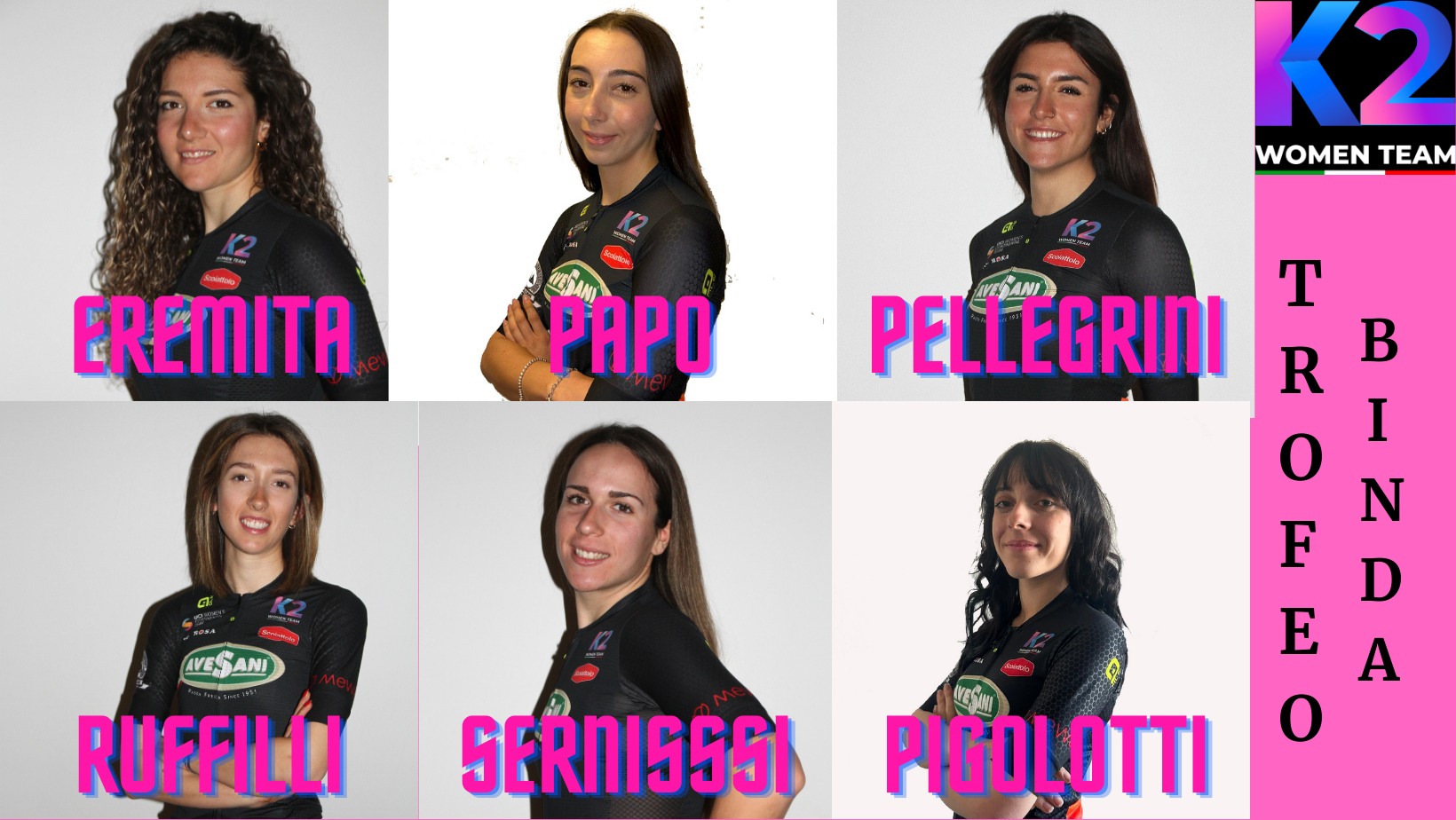La molisana Noemi Lucrezia Eremita torna alle corse dopo l’ottima prestazione al Trofeo Ponente in Rosa dove ha concluso come terza miglior giovane. Accanto a lei ci saranno 5 compagne di squadra: la friulana Alice Papo, la romana Sara Pellegrini, la piemontese Vittoria Ruffilli e le toscane Gemma Sernissi e Rebekka Pigolotti che debutta in maglia K2.