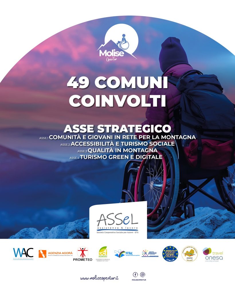 ASSeL – Assistenza e Lavoro, Società Cooperativa Sociale per Azioni – ETS (socia del Consorzio MAGMA Sociale), in qualità di capofila dell’Associazione Temporanea di Scopo (ATS), comunica l’avvio del progetto “MOLISEOPENTUR – Turismo sociale e accessibile” (CUP: J58J24000250001), finanziato dal Ministero del Turismo a valere sul Fondo Unico Nazionale per il Turismo, misura “Montagna Italia”.