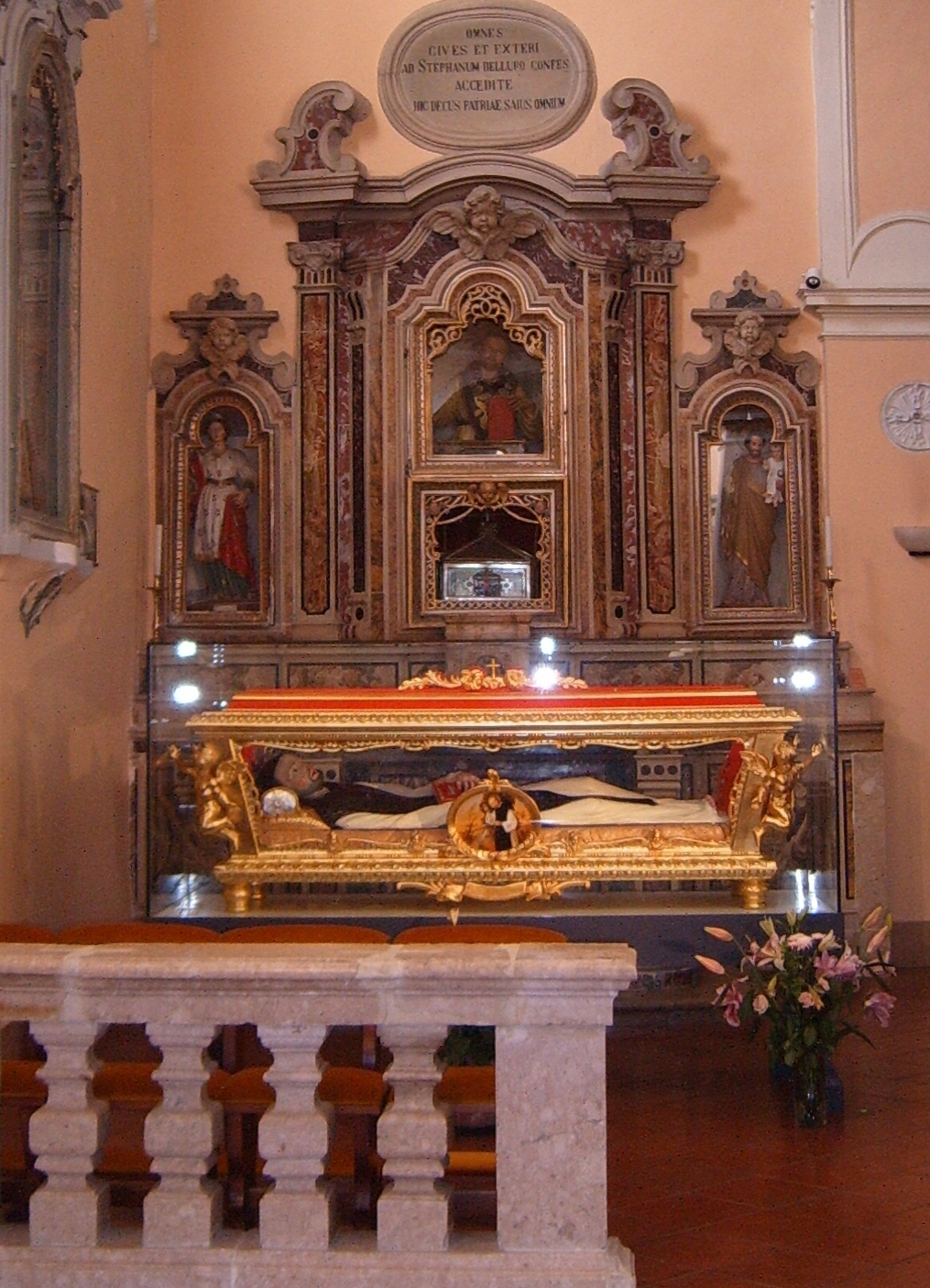 Queste le parole usate dall’ex Vescovo di Trivento, Mons. Domenico Scotti, chiamato a definire la particolarità di Santo Stefano del Lupo che, in vita, è stato un luminoso esempio di mitezza e di bontà nei confronti del prossimo. Questi, nato a Carovilli nel XII secolo, in data ancora sconosciuta, morì il 19 luglio 1191 nel monastero benedettino di Vallebona, presso Manoppello, dove era Abate. Santo Stefano, conosciuto anche come “confessore”, per volontà di popolo è stato designato quale Patrono del suo paese natio dove probabilmente è entrato nel convento di Pesco Corvaro, allora attivo, prima che venisse distrutto dai Saraceni. Egli è venerato, oltre che per la sua mitezza, anche per aver saputo ammansire un lupo che terrorizzava gli abitanti delle campagne abruzzesi e viene festeggiato tutti gli anni proprio domenica prossima, 19 luglio. Quest’anno, tuttavia, i festeggiamenti dovranno essere più contenuti del solito perché il pericolo rappresentato dal diffondersi del virus covid 19, nonostante la scarsa diffusione in tutta la Regione Molise, e le regole imposte dal governo nazionale impediscono i consueti assembramenti di persone. La Santa Messa solenne, che ogni anno viene celebrata in questa occasione, non potrà essere seguita come al solito da quasi tutta la popolazione, né la caratteristica processione preceduta dalla banda e dalla statua del Santo potrà percorrere gli antichi vicoli e le scalinate del centro storico di Carovilli. Tuttavia non mancheranno le sorprese. Una su tutte: la realizzazione di una scultura che rappresenta un lupo, a grandezza quasi naturale, in una posa di ascolto e di sottomissione mentre porge a Santo Stefano una lampada in bronzo, posizionata davanti alle sue zampe anteriori. La statua, molto espressiva e commovente, che verrà mostrata e benedetta domenica prossima, è posta ai piedi dell’urna che contiene le reliquie del Santo Patrono di Carovilli, nella cappella a lui dedicata. Proprio quella cappella è meta di frequenti pellegrinaggi e di raccoglimento in preghiera da parte di molti fedeli. L’opera, che in pochissimi hanno visto finora, è stata realizzata da un noto scultore locale, Antonio Falasca. Questi è molto apprezzato sia per i lavori in legno che in pietra ed ha già donato alla Chiesa di Carovilli, dedicata a Santa Maria Assunta, alcuni suoi pregevoli prodotti artistici.