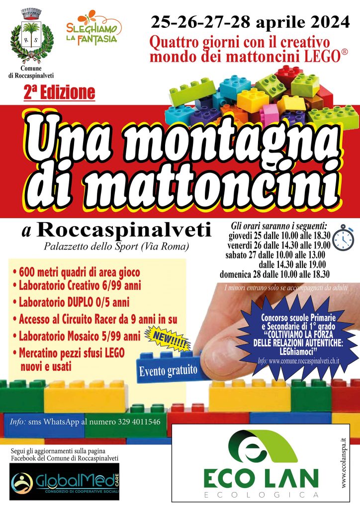 In occasione della seconda edizione dell’evento UNA MONTAGNA DI MATTONCINI – weekend con i mattoncini LEGO® – che si svolgerà a Roccaspinalveti nei giorni dal 25 al 28 aprile 2024, il Comune di Roccaspinalveti è lieto di invitare gli alunni di tutte le scuole primarie e secondarie di primo grado a partecipare al concorso “COLTIVIAMO LA FORZA DELLE RELAZIONI AUTENTICHE: LEGhiamoci!”