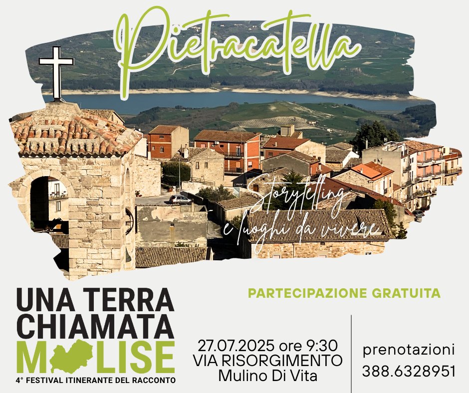 A Pietracatella domenica 27 luglio prende il via la quinta tappa del festival culturale itinerante “Una Terra Chiamata Molise”, organizzato da Il Villaggio della Cultura APS, realtà attiva nella promozione territoriale molisana. Un’iniziativa, alla sua quarta edizione, dedicata alla scoperta della regione attraverso narrazioni, musica, arte e visita dei borghi più suggestivi.