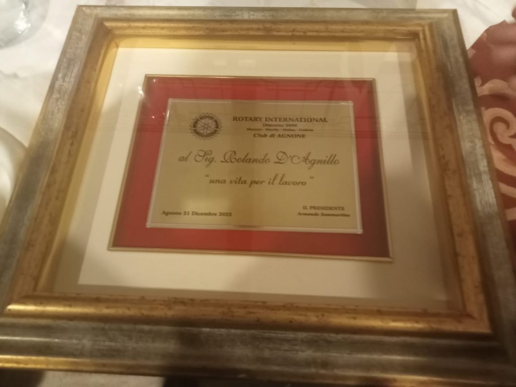 “Una vita per il lavoro”, il premio del Rotary Club di Agnone è stato assegnato al maestro sarto Rolando D’Agnillo. La cerimonia di consegna della targa nella serata di ieri, nel corso della tradizionale cena natalizia dell’associazione filantropica agnonese.