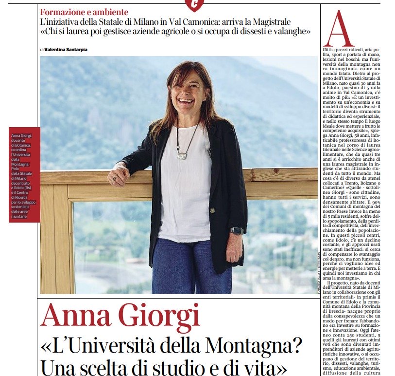 A Edolo, in provincia di Brescia, hanno scelto una strada diversa. Come spiega Anna Giorgi, 58 anni, infaticabile professoressa di Botanica e responsabile del polo UNIMONT della Statale di Milano, il progetto dell’Università della Montagna rappresenta ben altro rispetto all’immagine romantica che si potrebbe immaginare: “È un investimento su un’economia e su modelli di sviluppo diversi: il territorio diventa strumento di didattica ed esperienziale, e nello stesso tempo il luogo ideale dove mettere a frutto le competenze acquisite”.