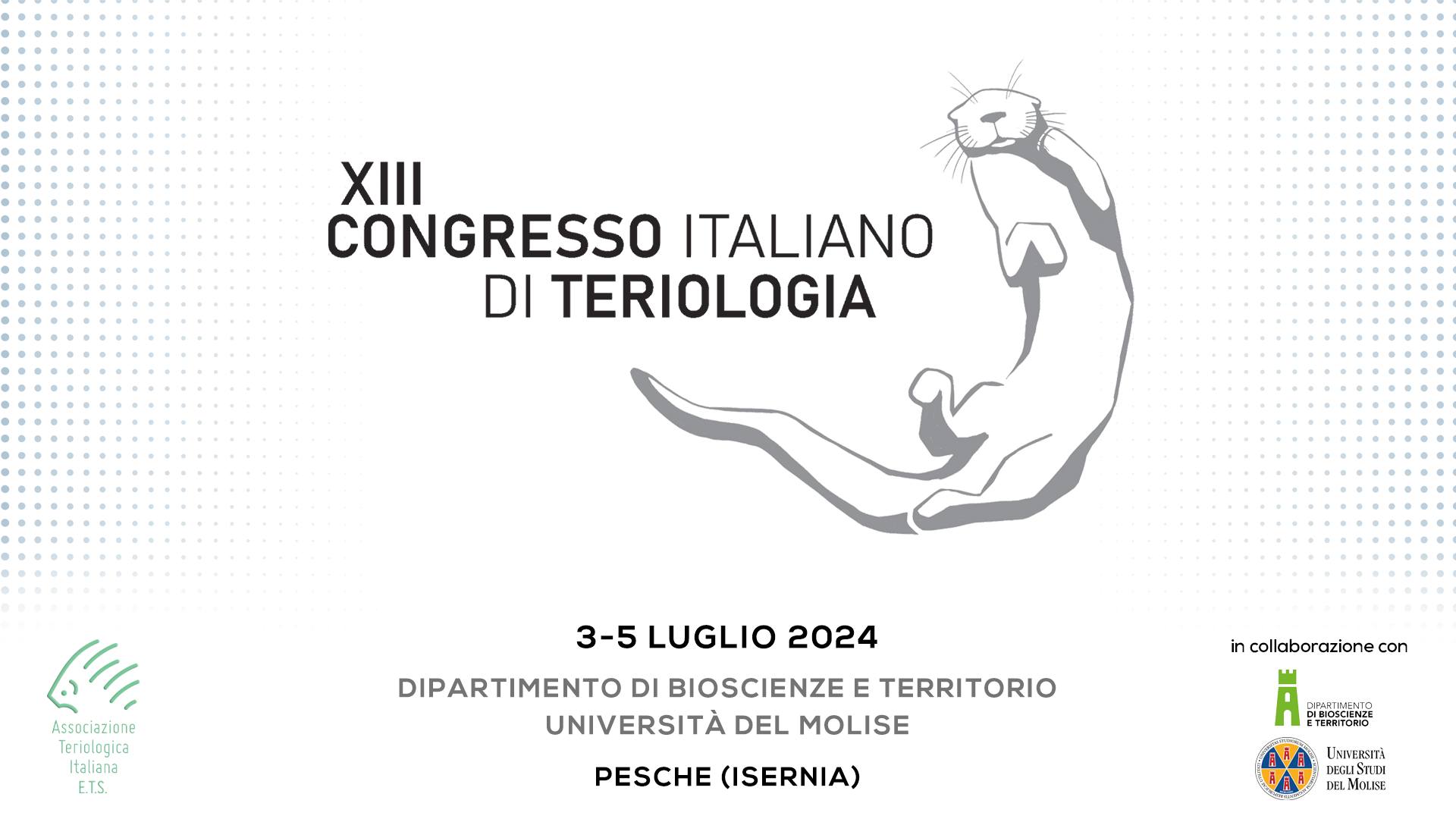 Il XIII Congresso Italiano di Teriologia è organizzato in collaborazione con il Dipartimento Bioscienze e Territorio dell’Università degli Studi del Molise che ospiterà anche, e per la prima volta in Molise, nell’Aula Magna “Galileo Galilei” della sede universitaria di Pesche (IS) – dal 3 al 5 Luglio 2024 – l’importante simposio scientifico nazionale.