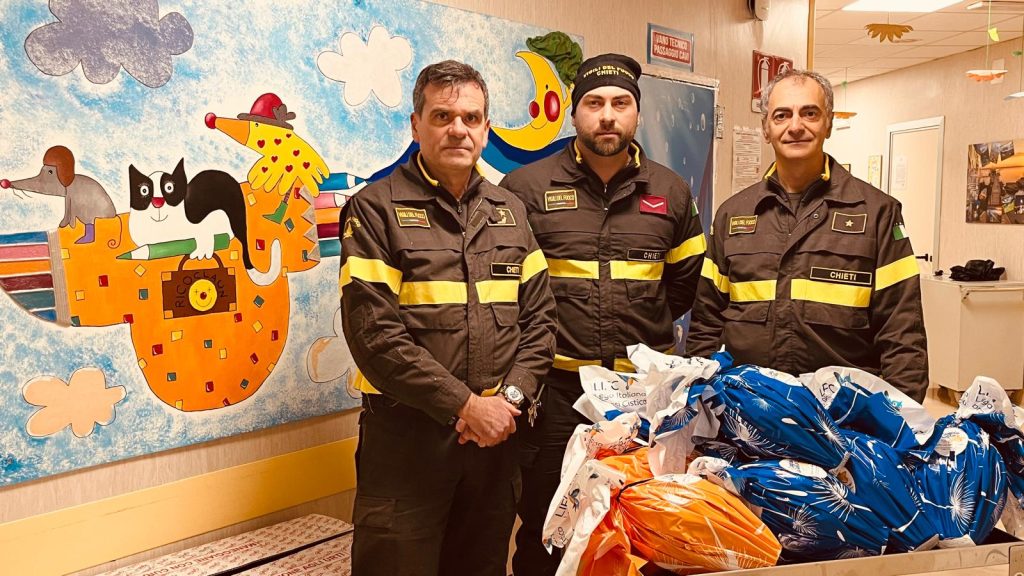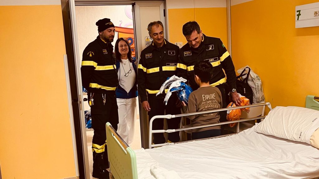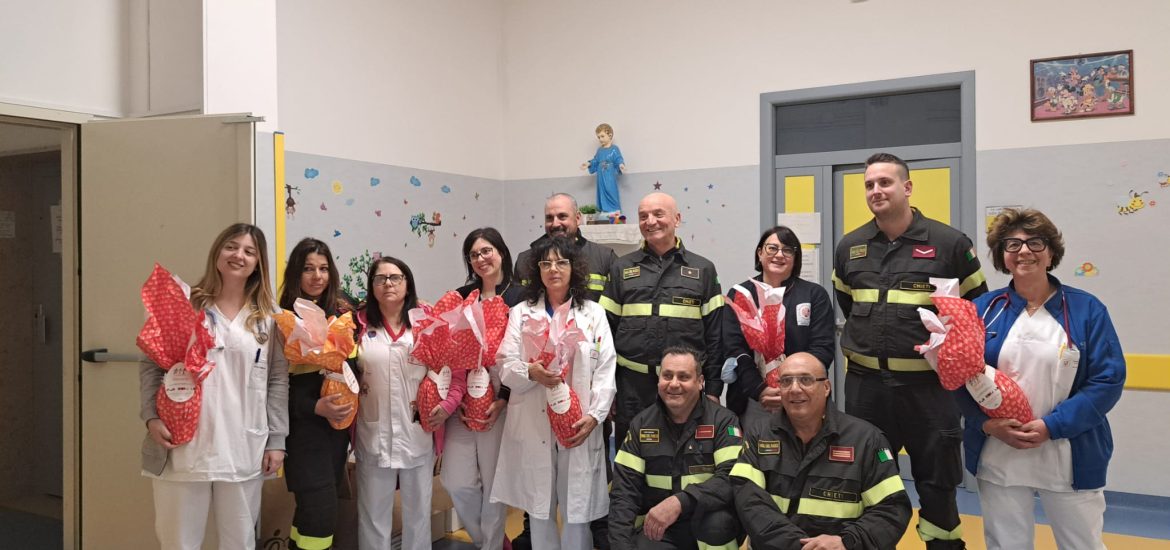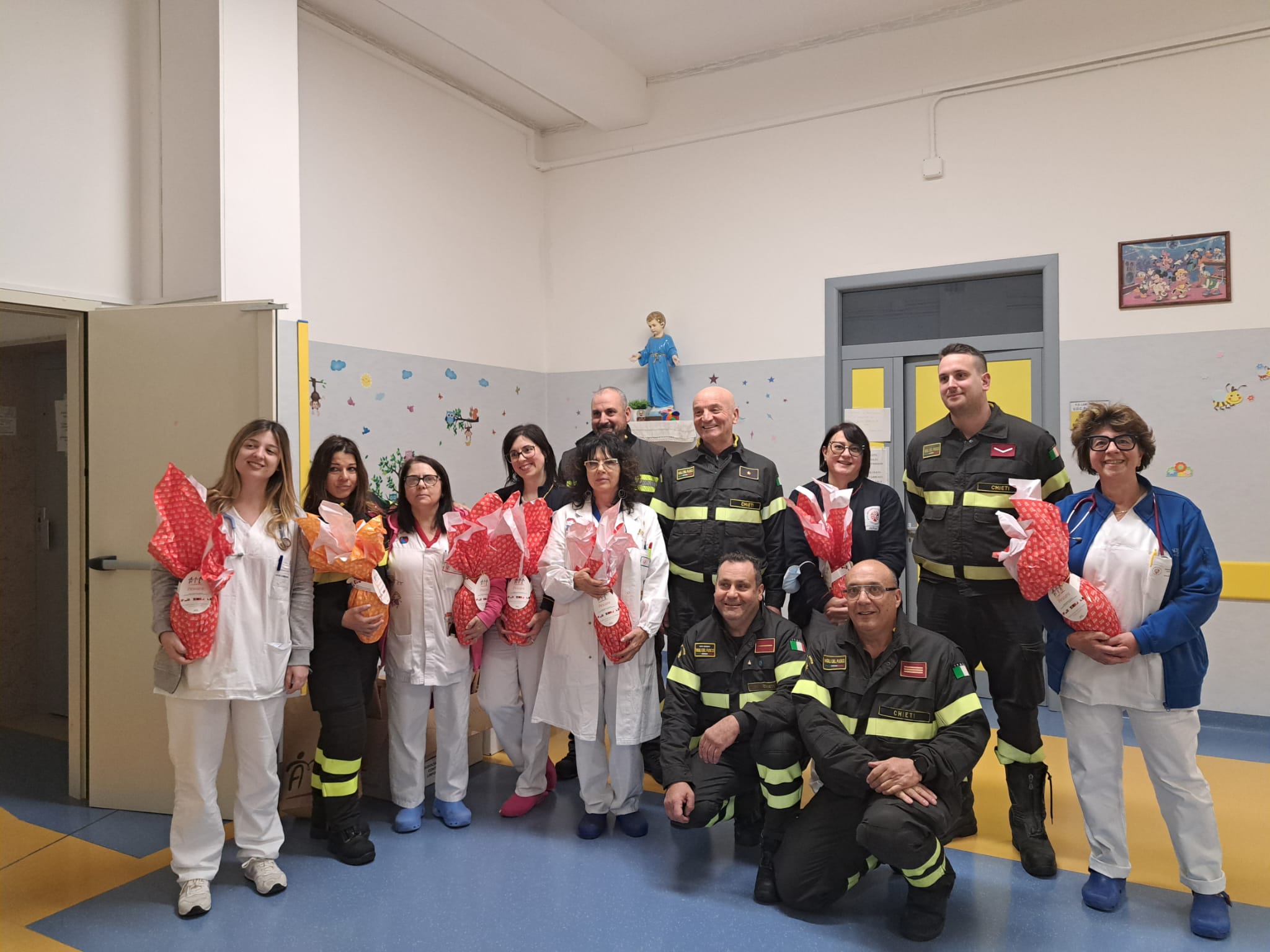 Il maxi uovo di Pasqua dei Vigili del fuoco del Comando di Chieti è arrivato anche ai bambini ricoverati nelle Pediatrie di Lanciano e Vasto. Due squadre distinte hanno raggiunto, ieri e oggi, il “Renzetti” e il “San Pio” per omaggiare i piccoli pazienti, sorpresi dall’arrivo degli angeli del soccorso tanto amati da tutti, adulti e bambini.
