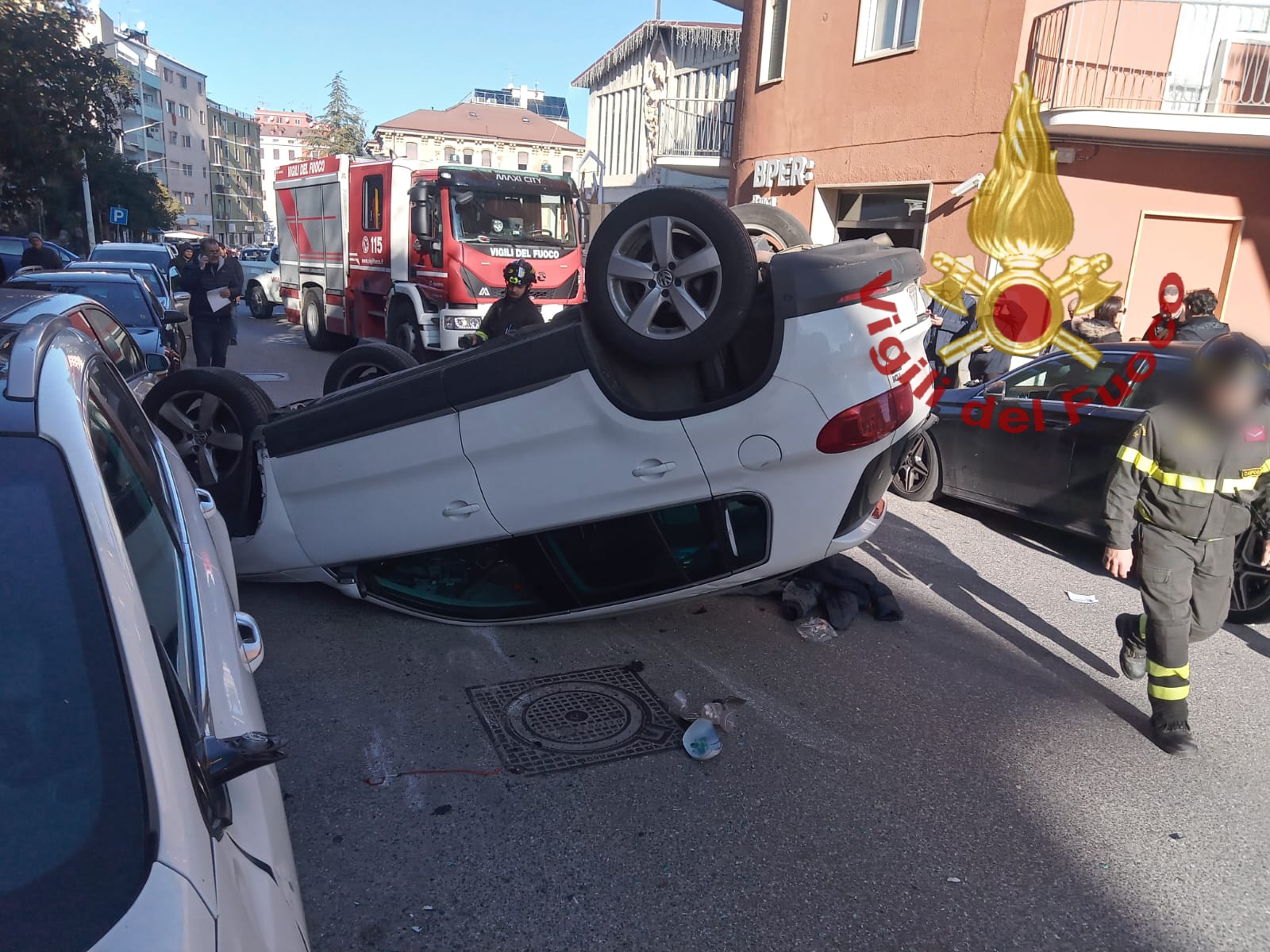 Una squadra di Vigili del Fuoco del Comando di Campobasso è intervenuta in via Principe di Piemonte a Campobasso per un incidente stradale. Un’auto, per cause ancora da chiarire, ha urtato contro un’altra autovettura parcheggiata e si è ribaltata. Nella dinamica sono state danneggiate altre autovetture. Il conducente è stato trasferito all’ospedale di Campobasso in codice rosso. Sul posto anche il 118 e la Polizia Locale per i rilievi.