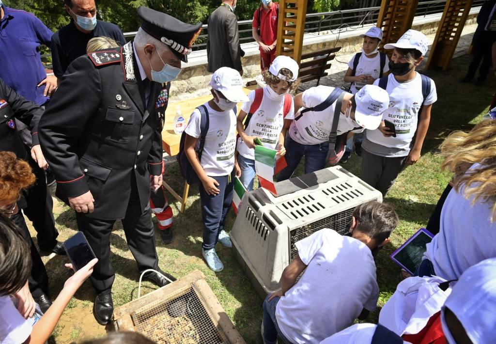 Scuola e Carabinieri insieme insieme per la custodia dell’ambiente: 150 ragazze e ragazzi nominati “Sentinelle della Biodiversità”. Carabinieri e Scuola insieme per un’alleanza educativa all’insegna della tutela della natura e della sostenibilità ambientale. Nella Riserva Naturale Statale di “Montedimezzo”, a Vastogirardi (Isernia), sede del locale Reparto Carabinieri Biodiversità, l’Arma dei Carabinieri ha conferito il titolo di Sentinelle della biodiversità a centocinquanta studenti delle scuole del Molise e di altre regioni d’Italia.