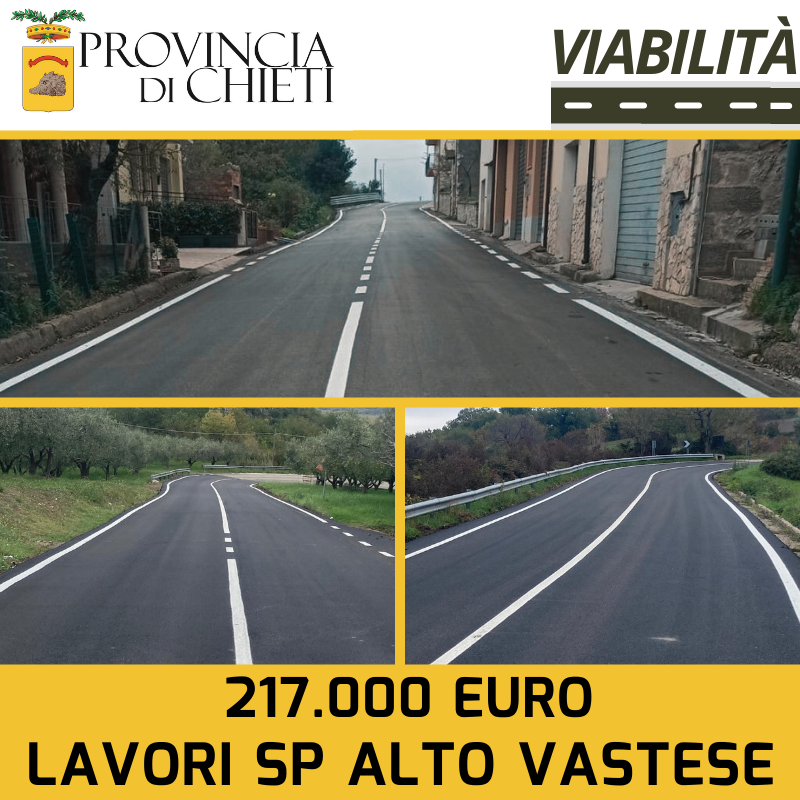 «Prosegue senza sosta e grazie al lavoro quotidiano degli uffici la messa in sicurezza della nostra rete viaria, che giova ricordare conta 1600 km di strade sull’intero territorio provinciale. A causa delle risorse economiche limitate bisogna individuare i tratti più ammalorati ed intervenire laddove è più urgente ripristinare le condizioni di sicurezza, come in questo caso che riguarda il distretto dell’alto vastese. L’attenzione della nostra amministrazione è massima e sono già programmati prossimi interventi analoghi su altre aree del vastese che necessitano di lavori per garantire standard di sicurezza adeguati per il traffico veicolare», dichiarano il presidente Francesco Menna e il consigliere delegato alla viabilità dell’area Vastese Carlo Moro.