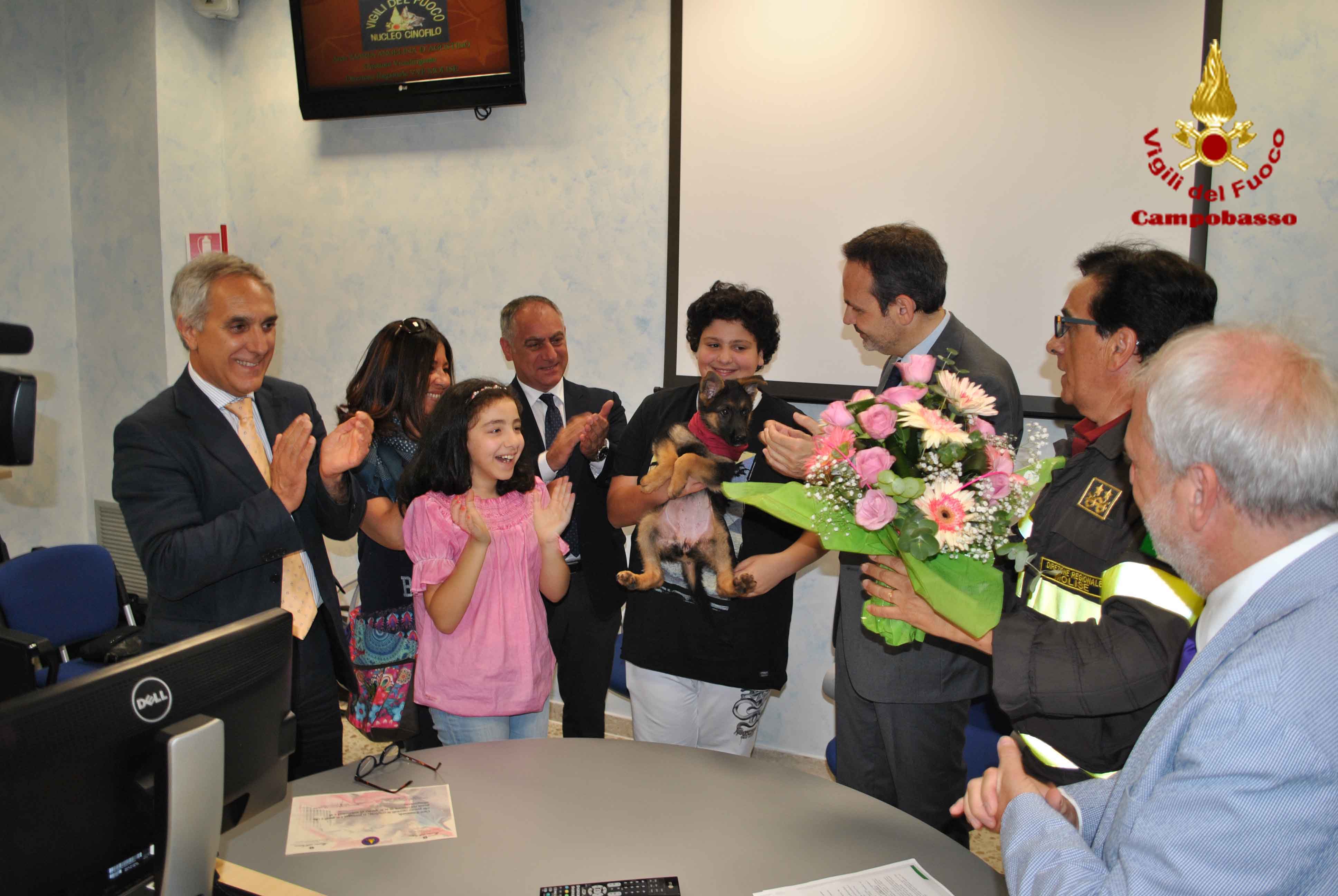 CAMPOCHIARO – Vigili del fuoco: donato un cucciolo di pastore tedesco al figlio di Iandolo caduto in servizio.