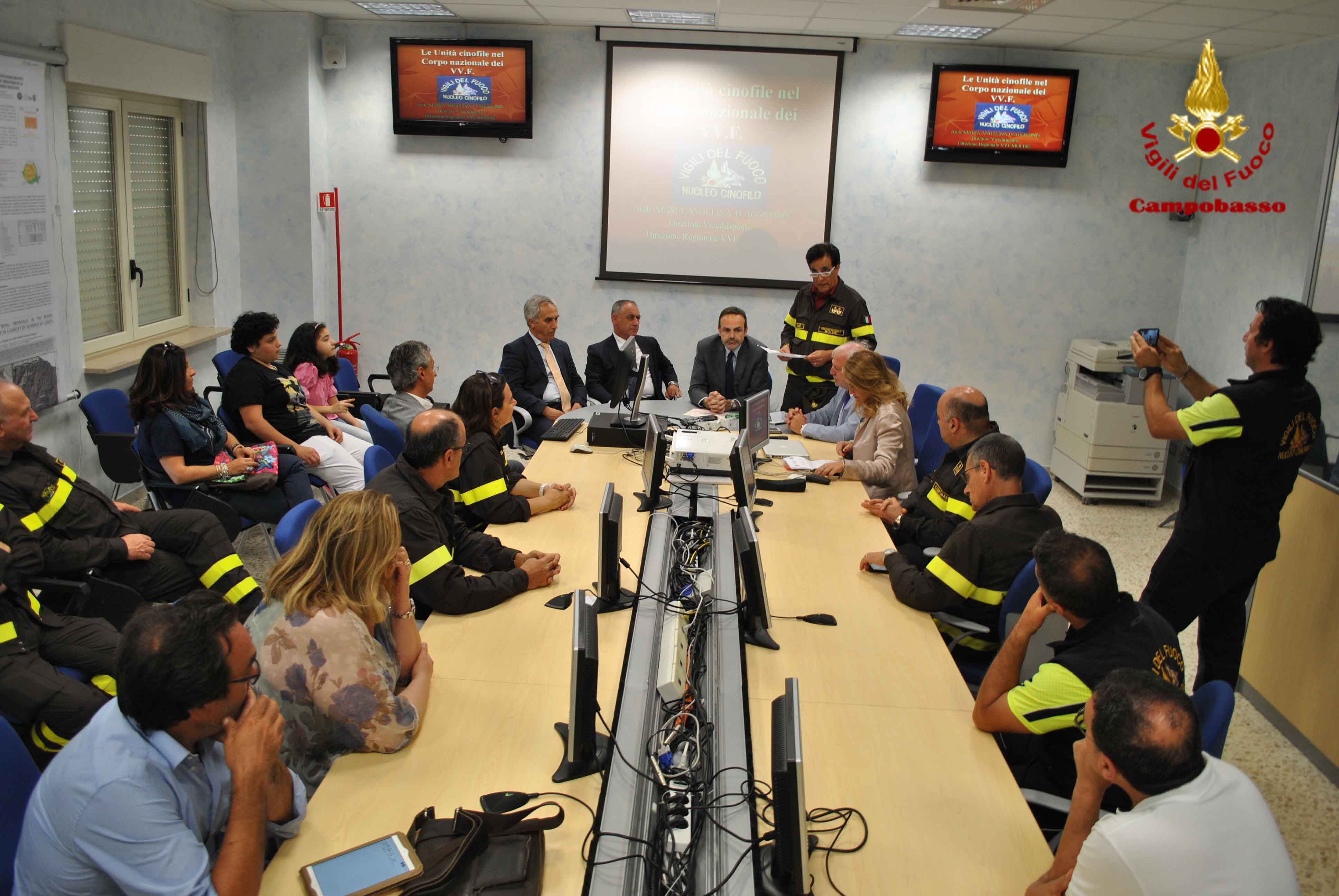 Si è svolta presso la sede operativa funzionale dell’Agenzia Regionale di Protezione Civile, sita in Campochiaro (CB), un incontro promosso dal Direttore Regionale dei Vigili del Fuoco del Molise ing. Antonio Barone, sul tema “Le Unità cinofile dei Vigili del Fuoco”.