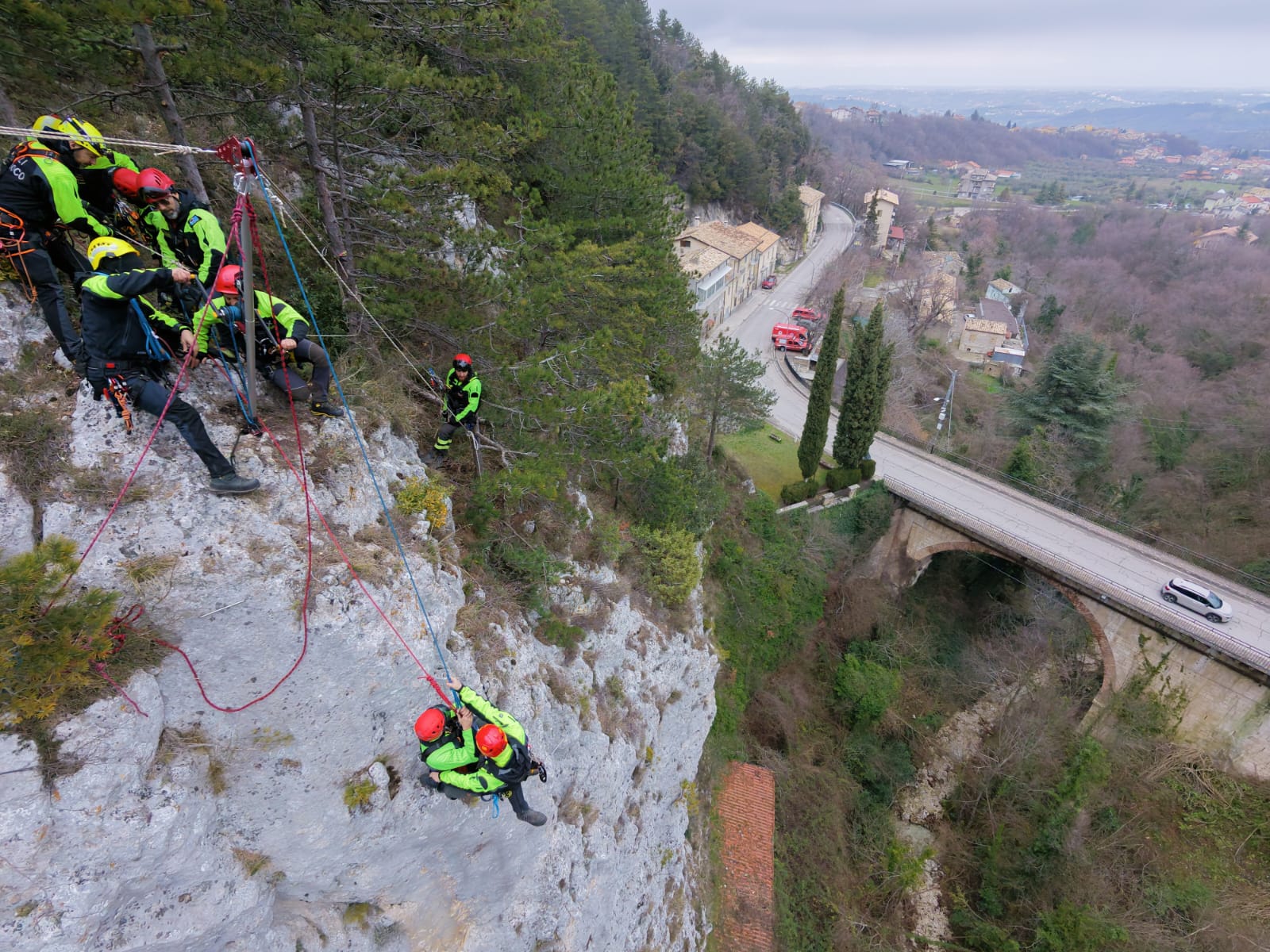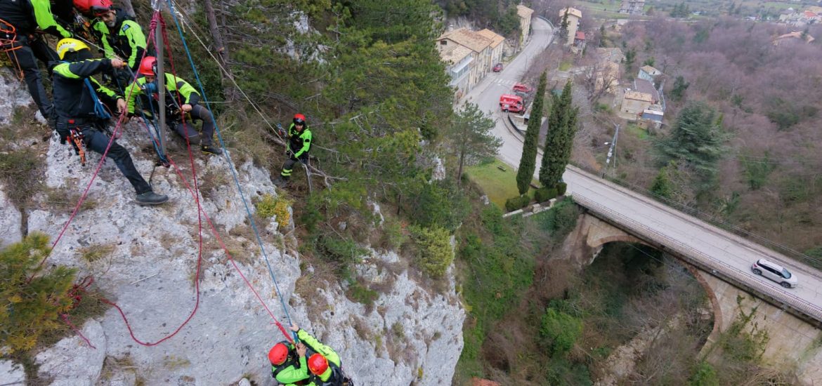 In una parete rocciosa in prossimità del Sacrario militare di Bocca di Valle nel comune di Guardiagrele, i Vigili del fuoco qualificati in tecniche avanzate di soccorso di derivazione alpinistica del nucleo SAF provenienti dai quattro comandi della regione Abruzzo, hanno effettuato un’attività addestrativa con simulazione di recupero in parete di un infortunato.