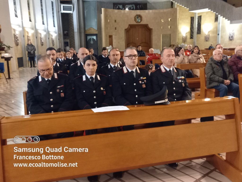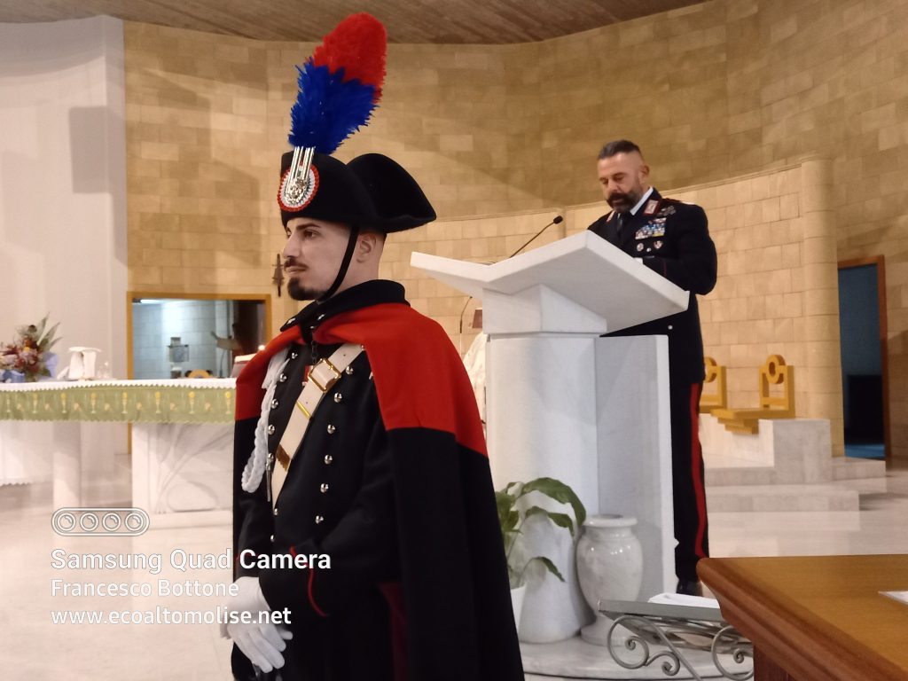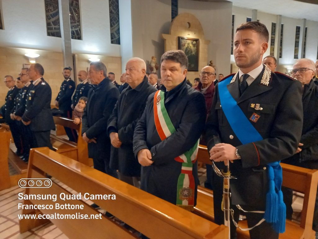Venerdì pomeriggio, nella Chiesa di Santa Maria di Costantinopoli di Agnone, si è celebrata la Virgo Fidelis, Patrona dell’Arma dei Carabinieri, con la Santa Messa officiata da don Onofrio Di Lazzaro, parroco della Chiesa di Maria Santissima di Costantinopoli e di Sant’Antonio Abate.