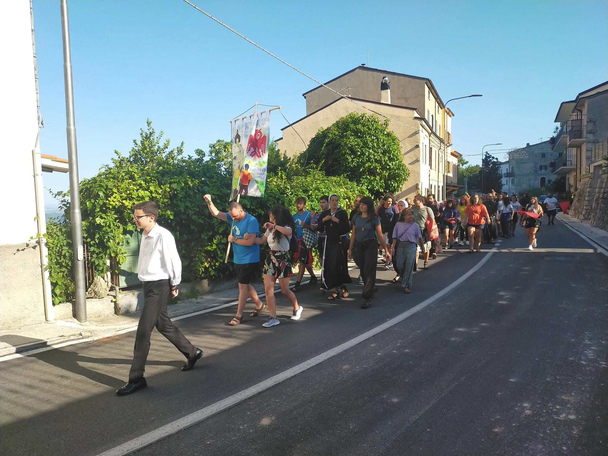 «Un cammino del corpo e dell’anima, un viaggio nella bellezza e nella condivisione che va oltre la fatica e gli imprevisti, con lo sguardo fisso alla Porziuncola, per vivere insieme a migliaia di giovani provenienti da tutta Italia, il Perdono di Assisi» spiegano dalla Pastorale giovanile della diocesi di Trivento. Partiti da Canneto, benedetti dal vescovo Claudio Palumbo, i pellegrini francescani, insieme a suore e frati, stanno risalendo l’Alto Molise: Pescolanciano, Chiauci, Pietrabbondante, Capracotta, Pescopennataro.