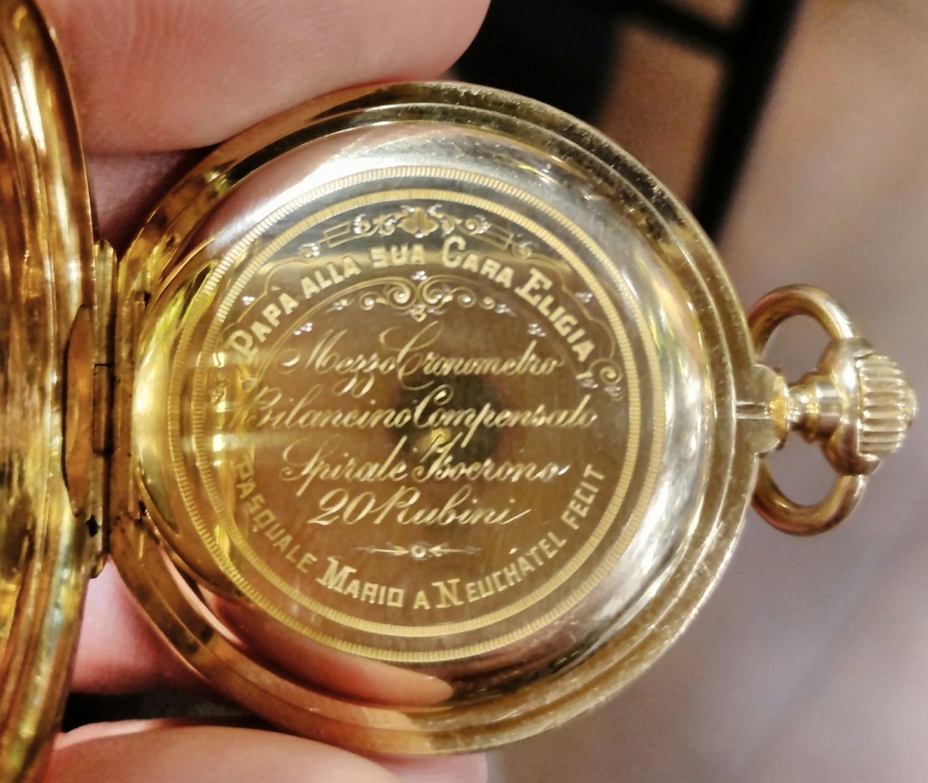 Si tratta dell’orologiaio Mario Pasquale, nato ad Agnone il 16 marzo 1847. Emigrò in Svizzera ancora giovane, dove svolse un ottimo apprendistato come orologiaio a Môtiers. Si stabilì quindi a Neuchâtel, città in cui ebbe un ruolo importante all’interno della colonia italiana. Fu il consigliere vigile, ma anche il benefattore dei suoi compatrioti, aprendo volentieri la sua borsa e il suo cuore. Fece fortuna e si dedicò ai viaggi. Si recò in Egitto nel 1900, si affezionò al suolo africano e decise di andarci ogni anno. Attivo e intraprendente, commerciava in orologeria, spingendosi per affari fino al Sudan, al Kordofan e al Darfur, diventando uno degli europei che conosceva meglio quelle regioni. Fornì al Neuchâtel Opinion Sheet diversi resoconti delle sue esplorazioni, durante le quali si confermano le sue doti di osservatore e la sua finezza mentale. Prima di morire a Palermo nel 1917 distribuì buona parte della sua eredità alle organizzazioni filantropiche nel suo paese di origine. Ancora oggi i suoi orologi sono particolarmente ricercati e apprezzati dai collezionisti.