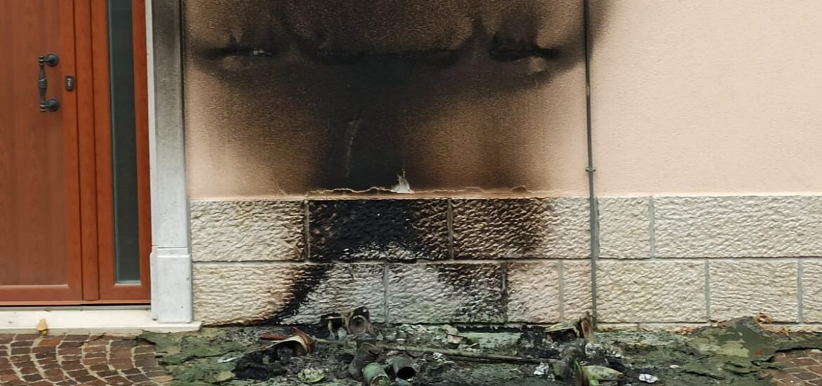 Il cassonetto andato in fiamme era situato davanti alla porta d’ingresso della nuova casa canonica (il parroco non vi dimora abitualmente, ndr), realizzata proprio negli ultimi anni. Il citofono della struttura è stato danneggiato dall’incendio e anche la facciata è rimasta annerita. Ciò che è davvero impressionante, tuttavia, è che il fumo e le fiamme hanno disegnato sulla facciata della casa canonina un volto demoniaco dall’espressione accigliata e minacciosa e dallo sguardo ipnotico e penetrante. Un inquietante e oscuro presagio o solo una singolare casualità? Basterà l’intervento di un imbianchino o servirà quello di un esorcista?