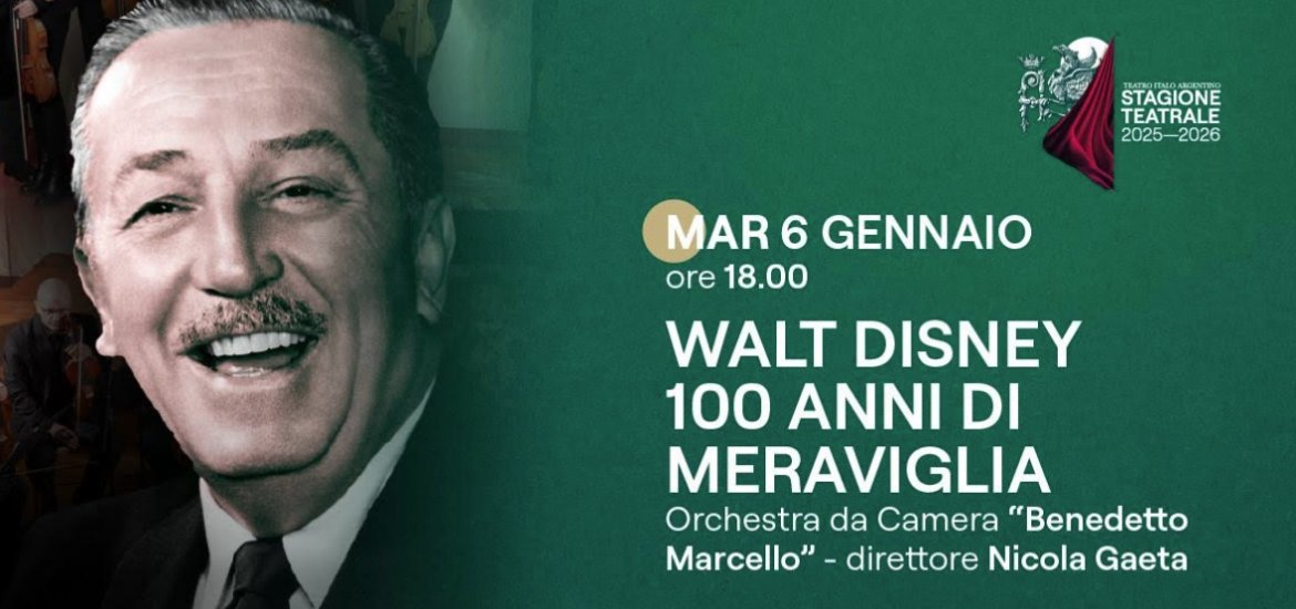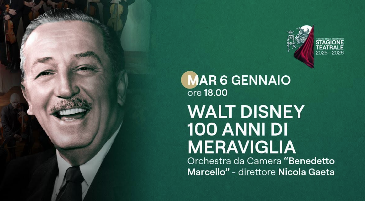 L’evento, che vedrà protagonista l’orchestra da camera “Benedetto Marcello” di Teramo, celebra il centenario della Walt Disney Company, fondata nel 1923 da Walter Elias Disney, geniale animatore e produttore capace di incantare intere generazioni con il suo universo fatto di musica, immagini e fantasia. Il concerto ripercorre un viaggio lungo cento anni attraverso i più grandi successi musicali Disney, firmati da celebri compositori come Alan Menken e Michael Giacchino. Dai primi cortometraggi di Mickey Mouse fino al primo lungometraggio animato della storia del cinema, Biancaneve e i sette nani, premiato con l’Oscar nel 1937, lo spettacolo attraversa le tappe fondamentali della produzione Disney: da Cenerentola a Pocahontas, da Aladdin fino ai capolavori più recenti come Coco. Lo spettacolo e gli arrangiamenti sono stati ideati e scritti dal professor Nicola Gaeta, il direttore d’orchestra che è legato ad Agnone da un rapporto speciale: è docente di flauto traverso all’indirizzo musicale dell’Istituto Omnicomprensivo G. N. D’Agnillo – Molise Altissimo, una realtà scolastica vivace, culturalmente attiva e punto di riferimento educativo per il territorio.