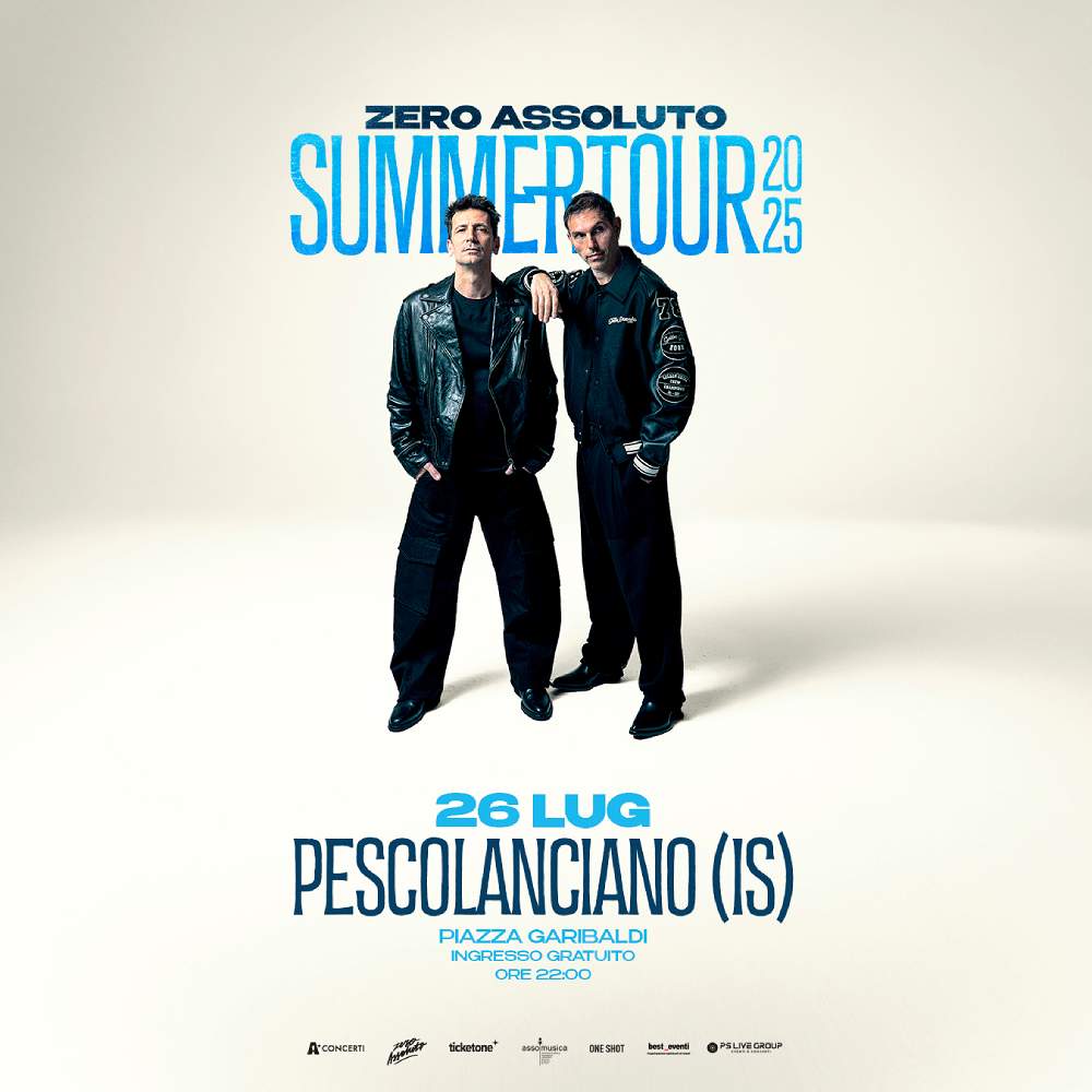 ZERO ASSOLUTO – Matteo Maffucci e Thomas De Gasperi, corpo e anima del progetto musicale Zero Assoluto, si conoscono nel 1992 fra i banchi del liceo classico Giulio Cesare di Roma. Nel 2004 esce il singolo Mezz’ora, che anticipa il primo album Scendi.